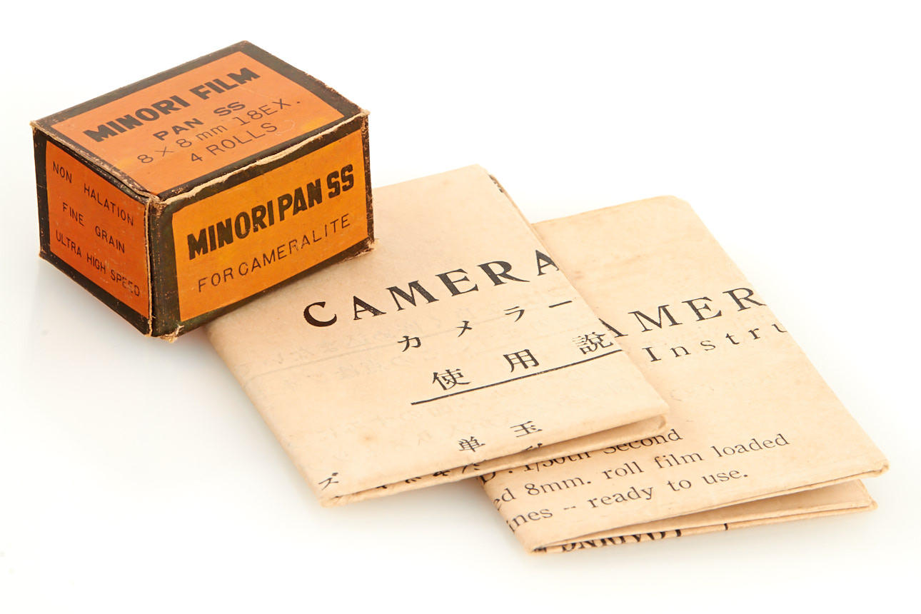 classic chrome version in very fine and working condition, with case, English and Japanese instructions, sealed Minori Film, matching maker's box