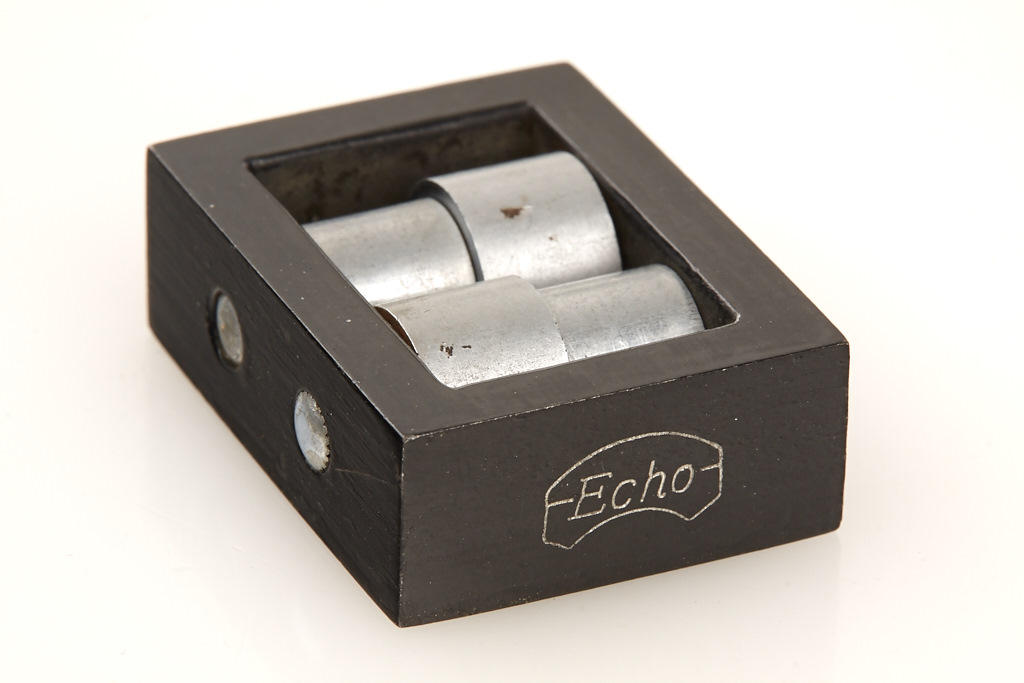 mint cigarette lighter camera in original red maker's box with film cutter, two film-spools