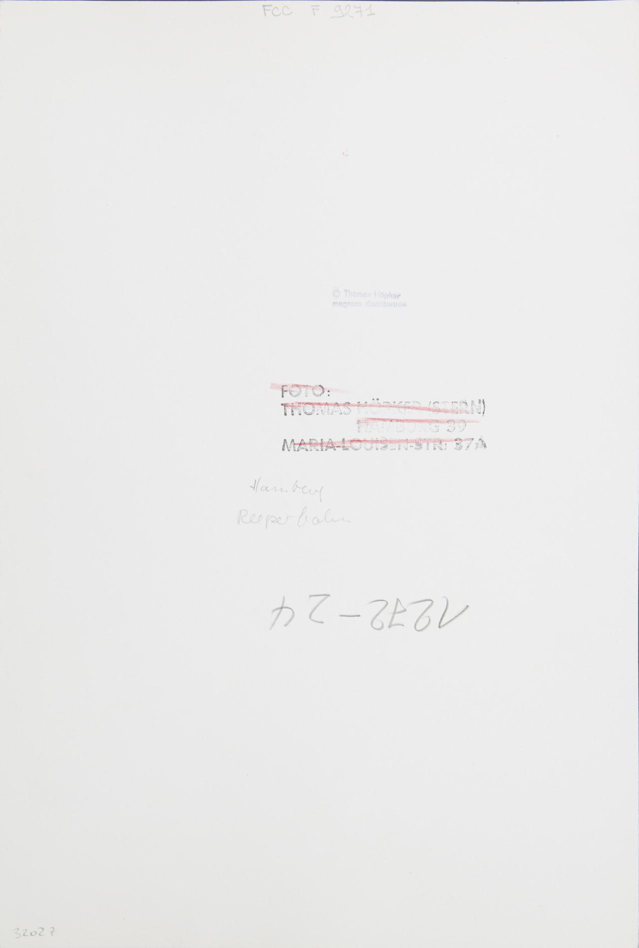 Vintage silver print 34,7 x 23,5 cm Photographer's agency stamp and his crossed out “Stern” credit stamp on the reverse, several handwritten notations in pencil on the reverse