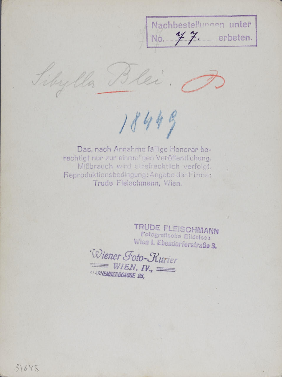 TRUDE FLEISCHMANN (1895–1990) Sibylla Blei, Vienna c. 1924