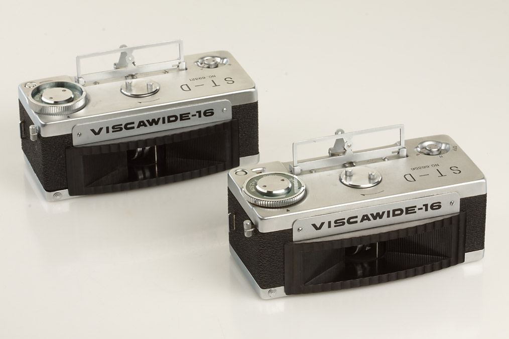 two subminiature panoramic cameras (no.66356 & no.69321) for 120° exposures on 16mm film, both near mint with case, one maker's box with instructions