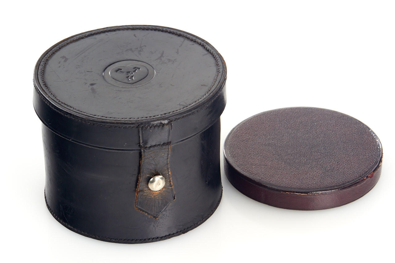 in beautiful condition, covering 6 1/2 x 8 1/2", clean optics, with leather front cap and original leather case with Taylor & Hobson logo