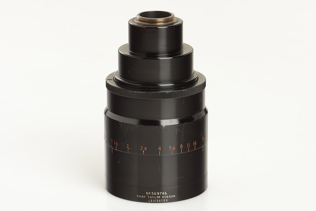 black painted C-mount tele lens with yellow coating (X-ray purposes), iris diaphragm, no focusing mount