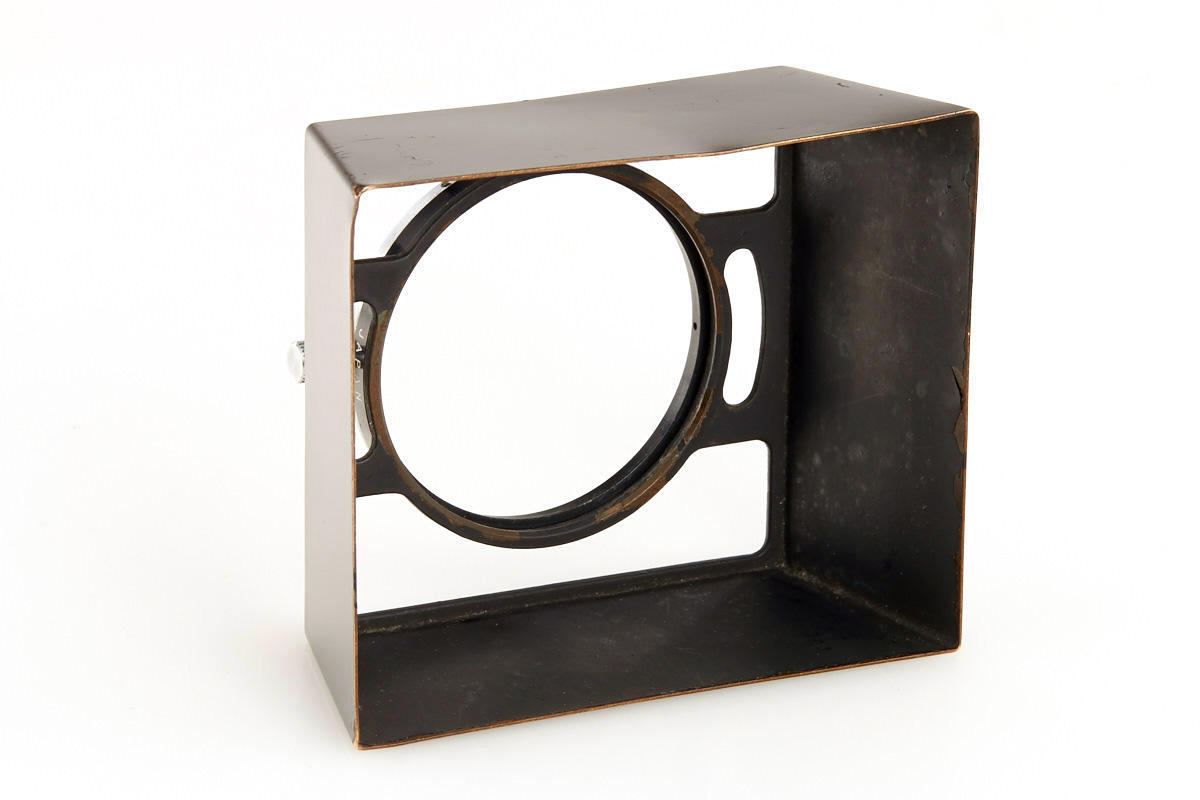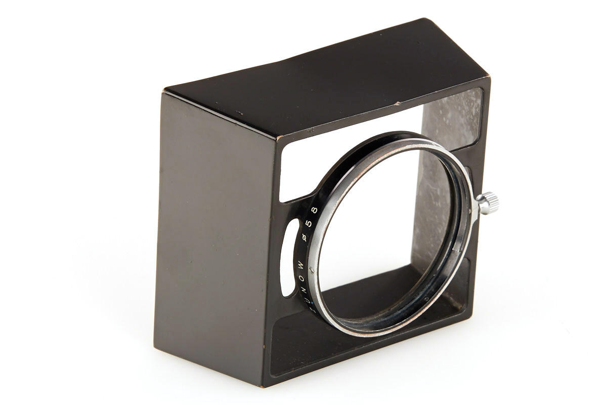 in RF coupled mount for M39, in very good condition, with few cleaning marks on front element, small dent on front rim, with very rare square black painted Zunow metal hood, case