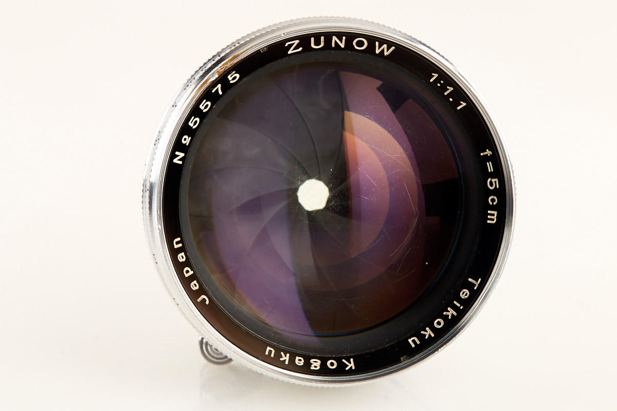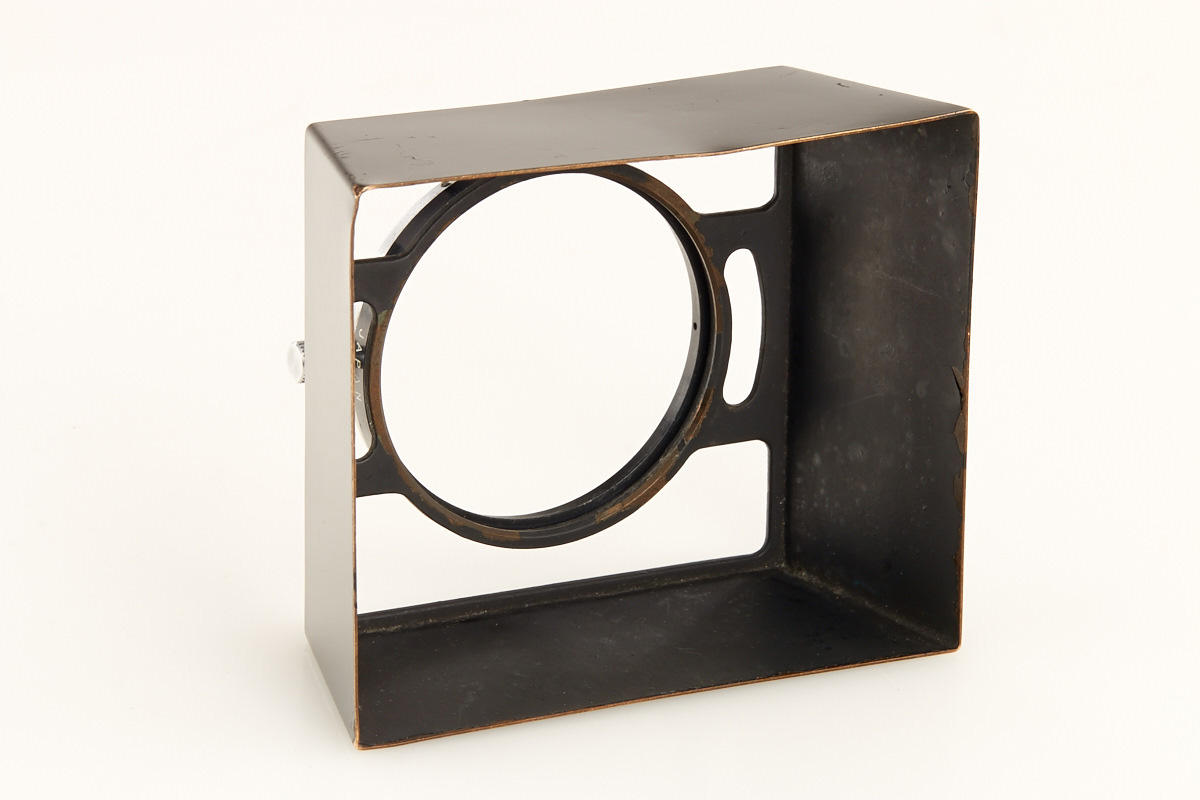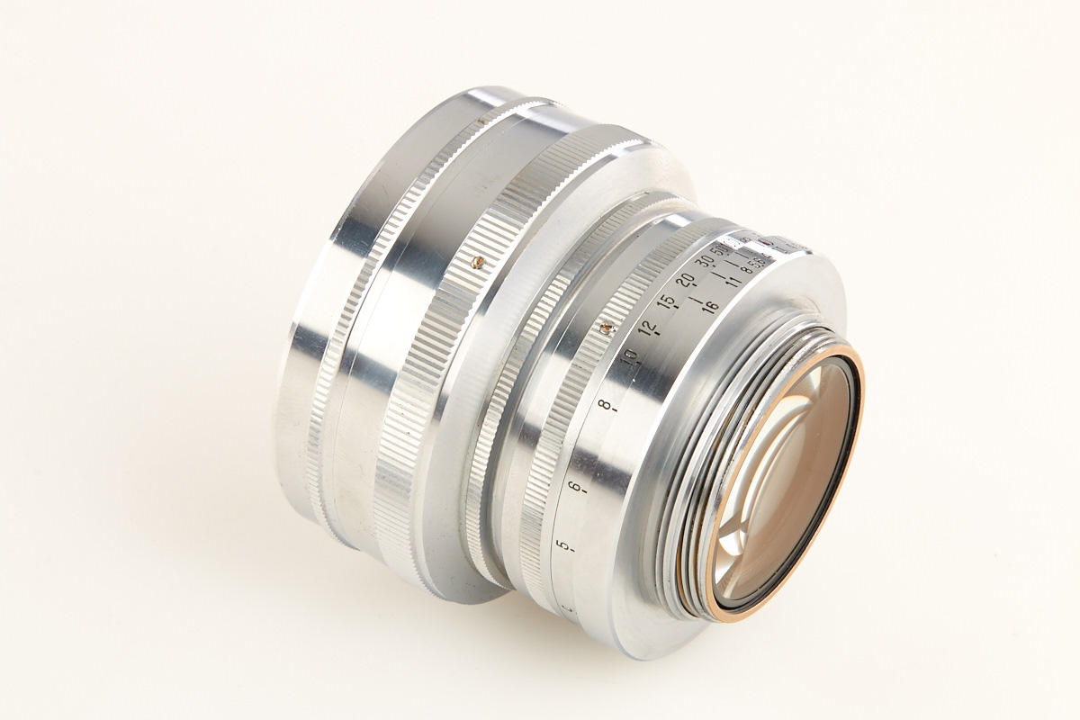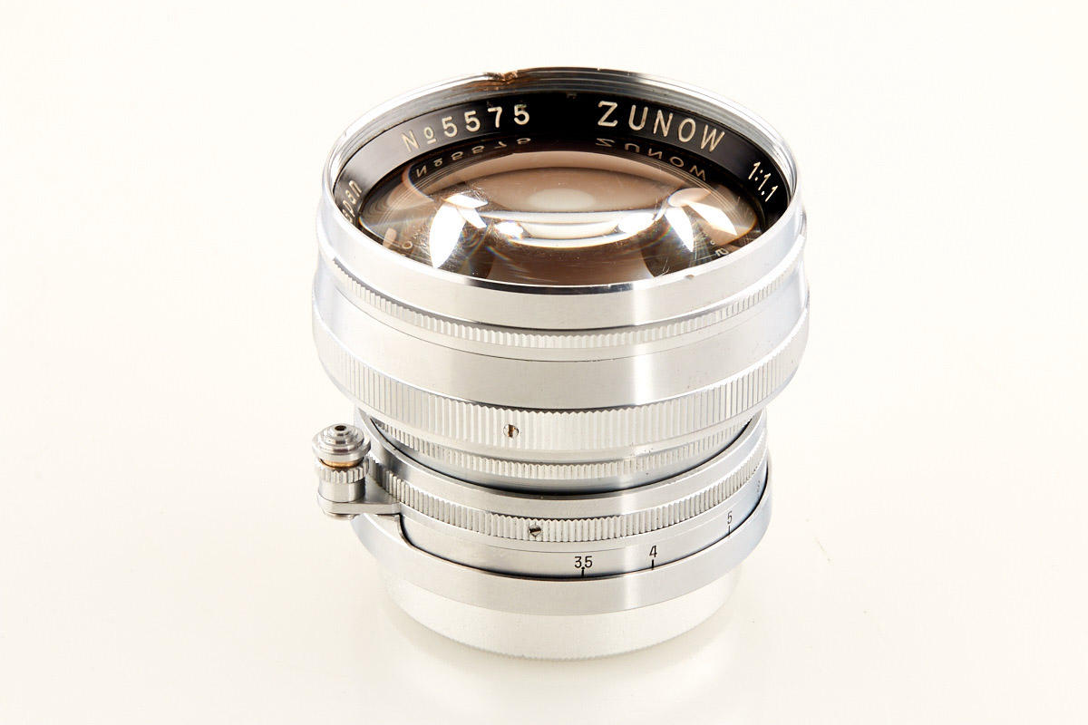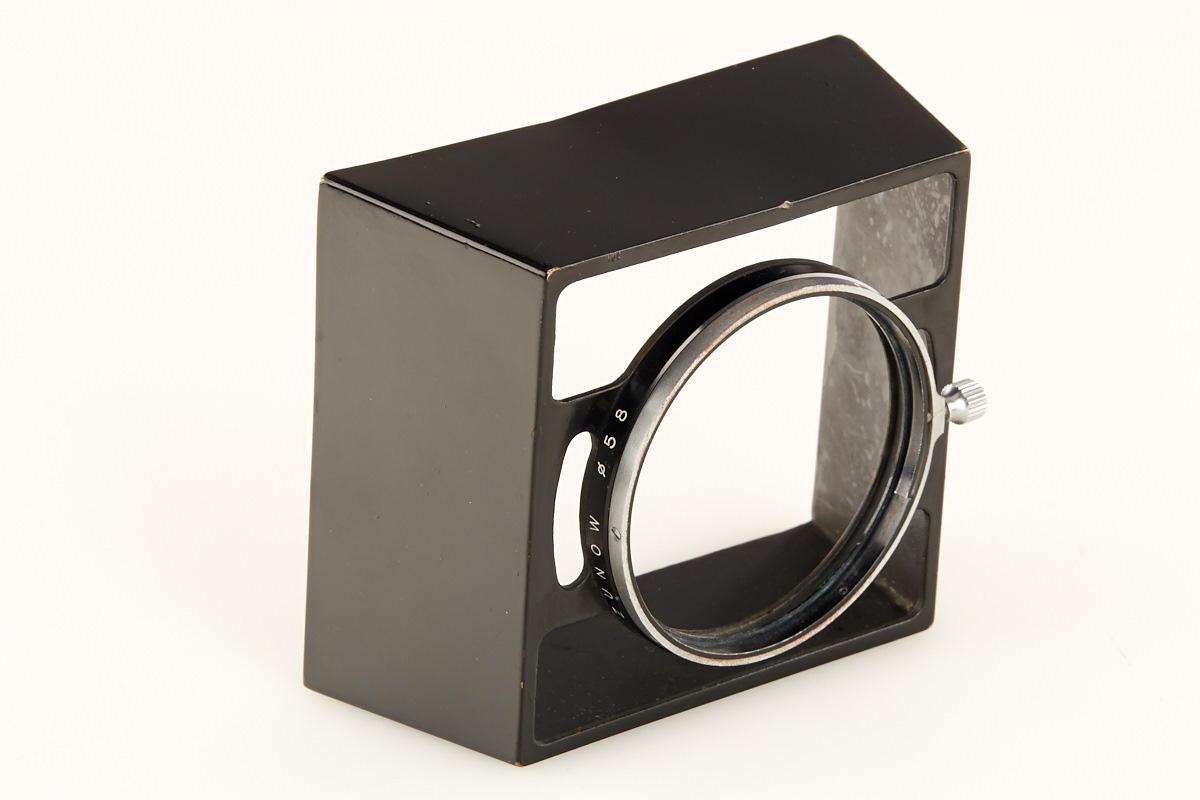 in RF coupled mount for M39, chrome Zunow with cleaning marks, small dent on front rim, with very rare square black painted Zunow metal hood, case