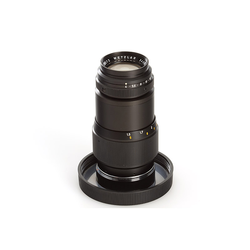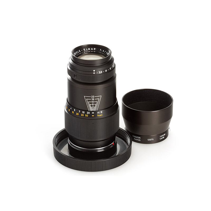 almost mint, late Tele-Elmar with perfect lenses, all black metal hood 12575, UV filter, keeper, warranty card, maker's box