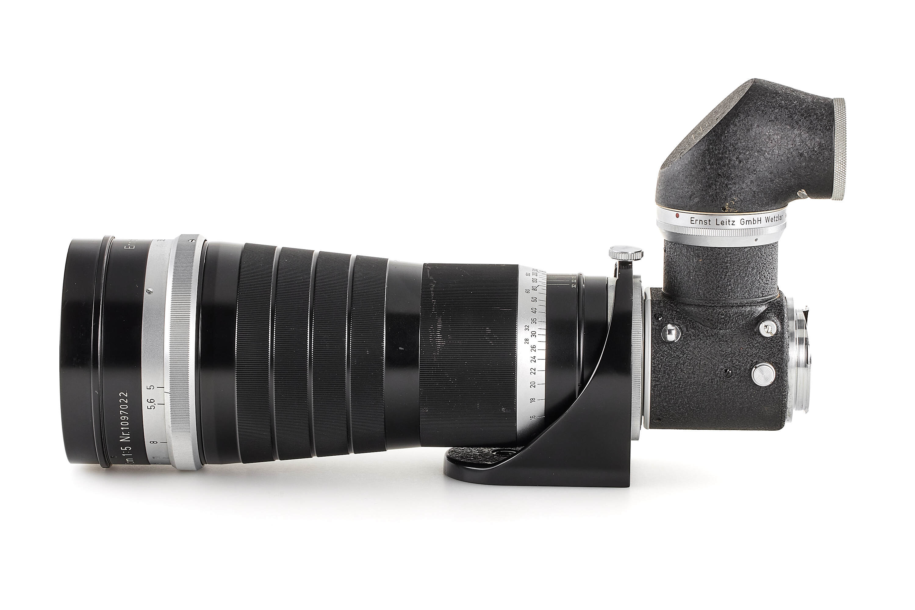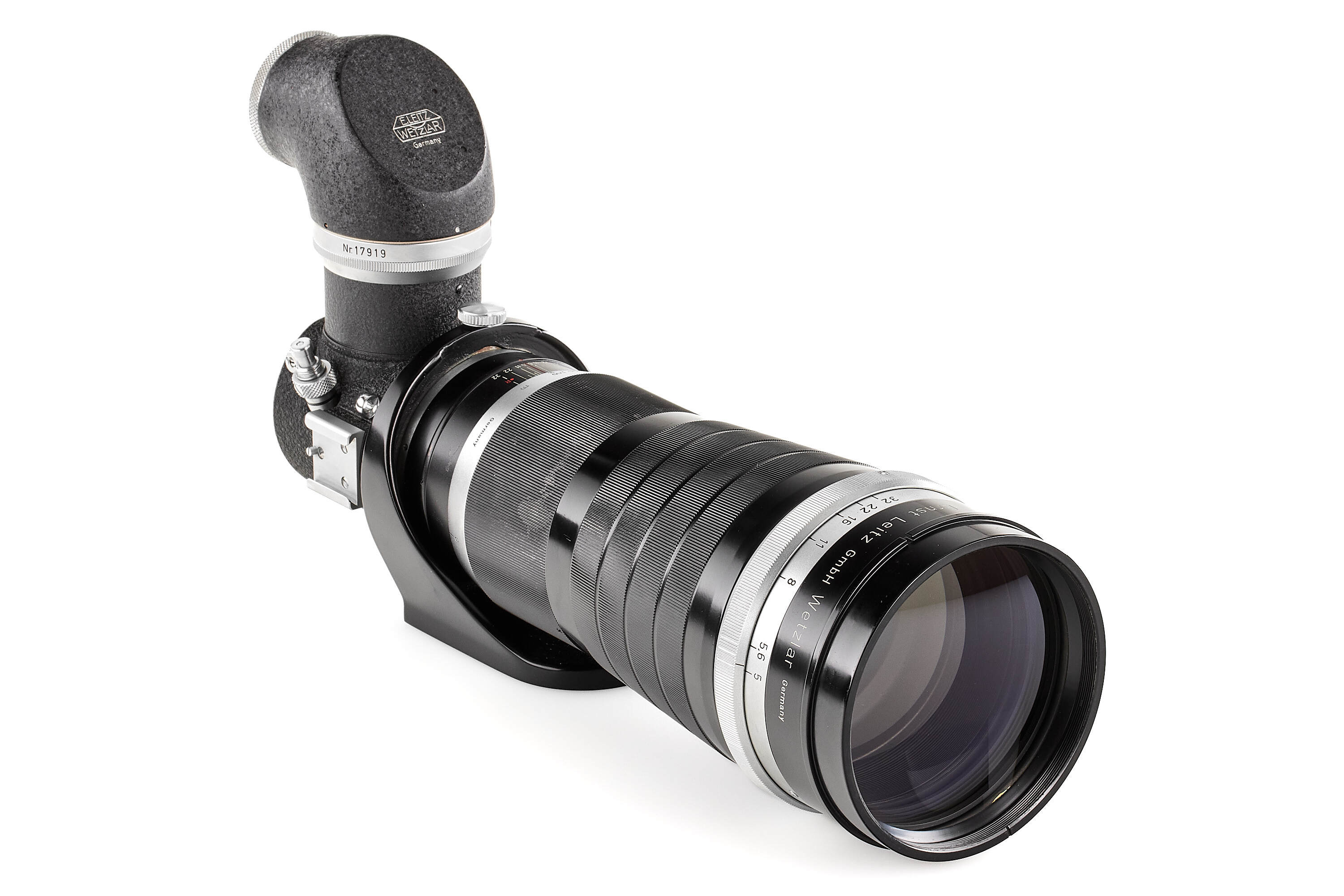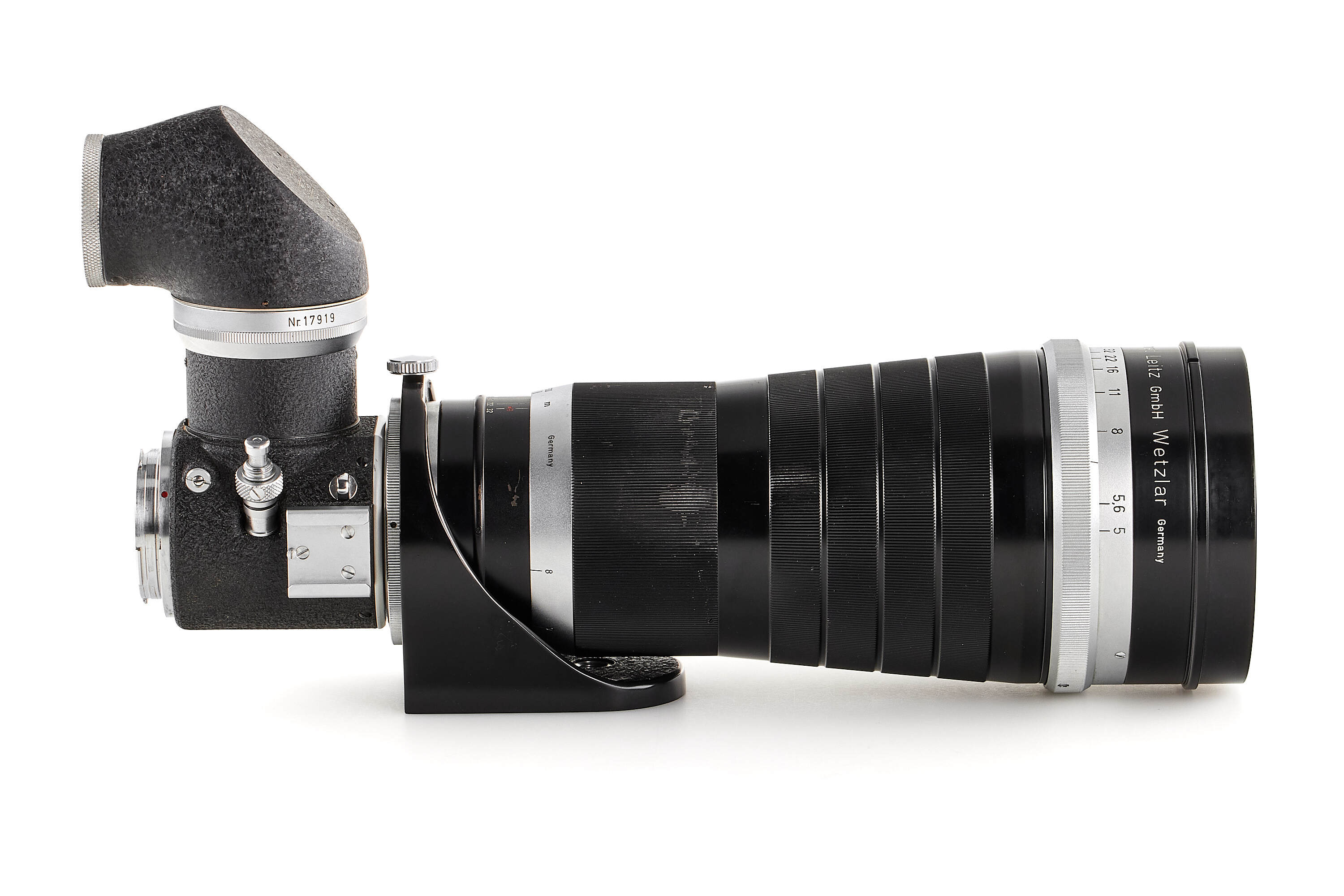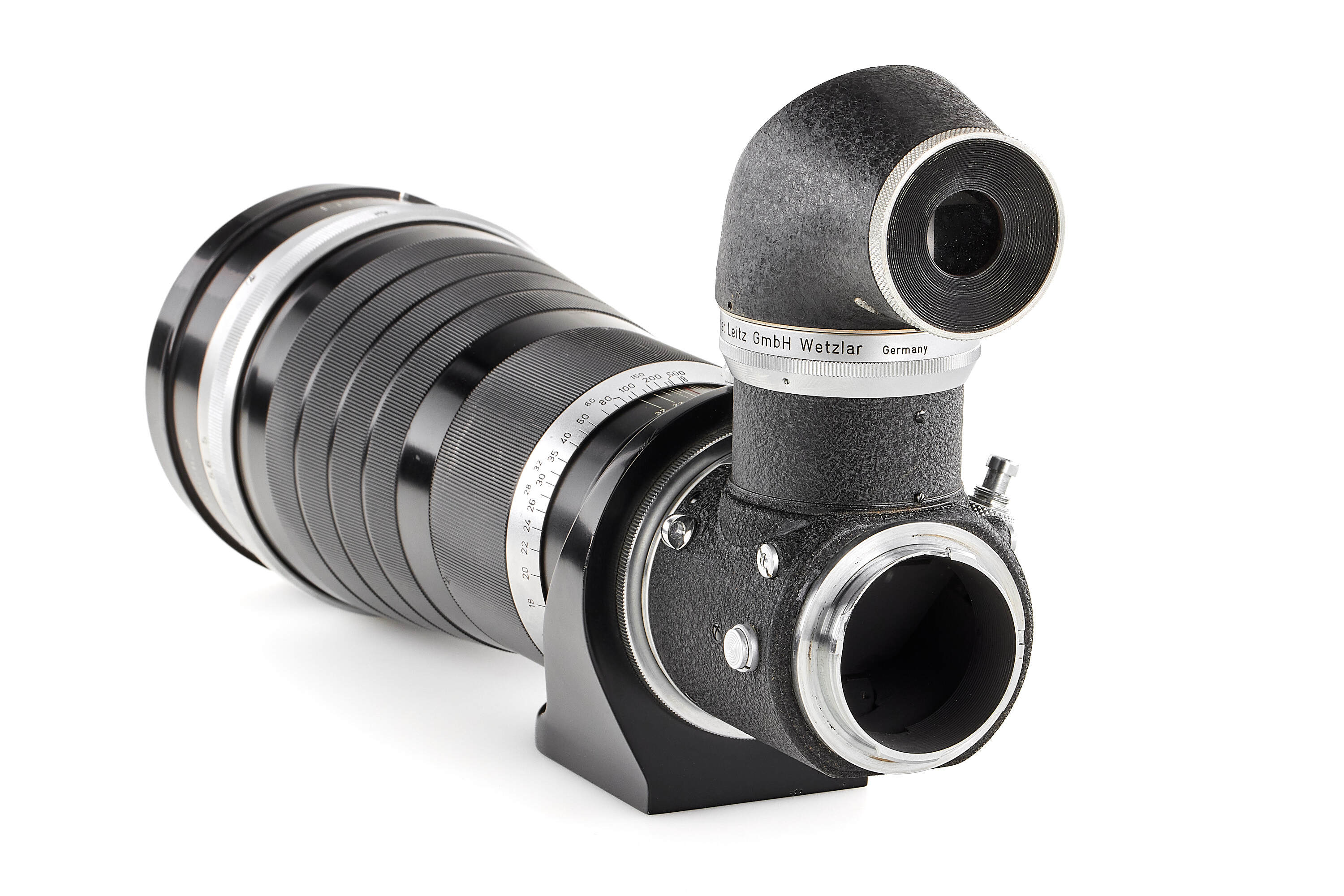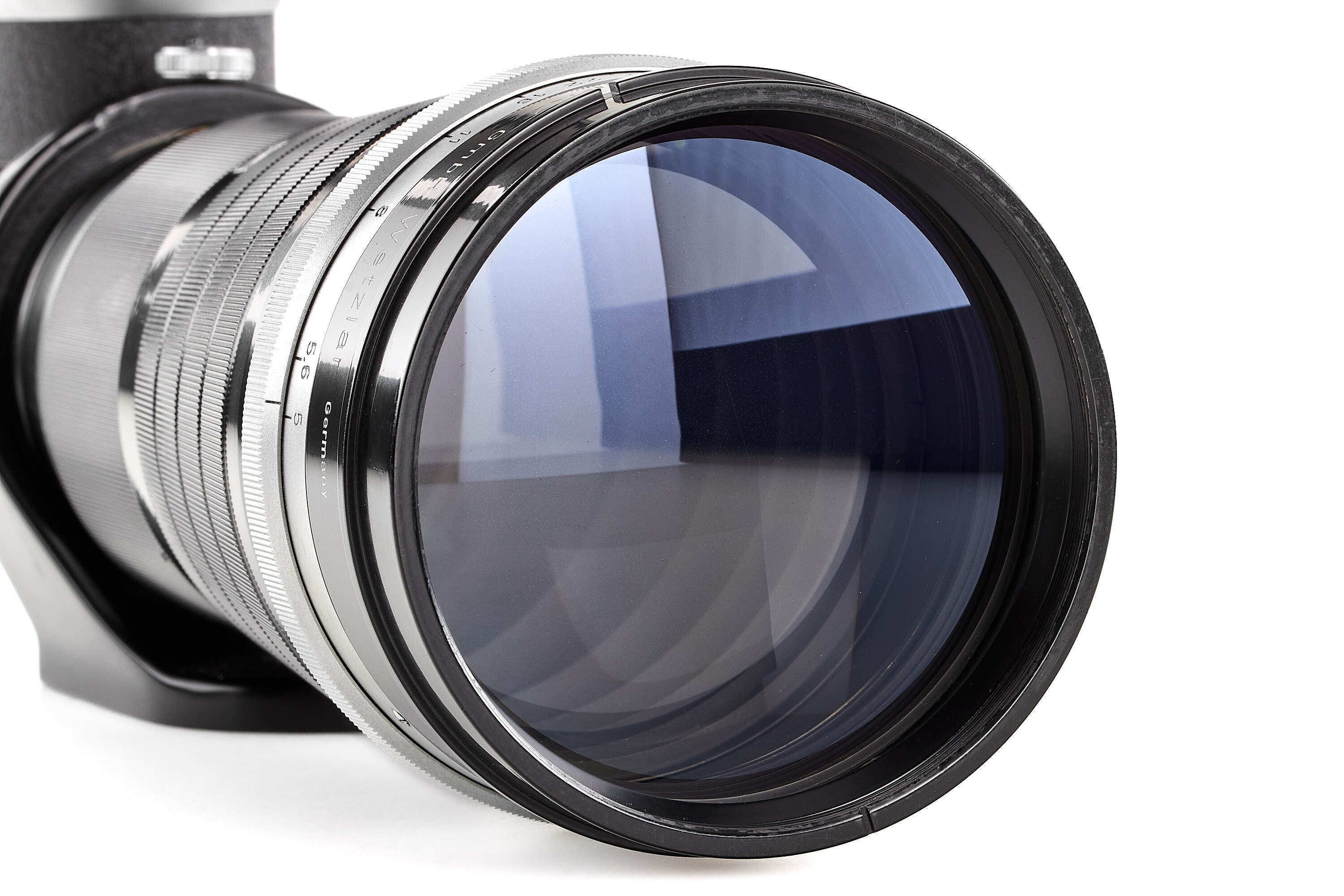 Rare very late 1st version in almost mint condition, only less than 700 units produced (last serial number no.1098000), meter scale, good optics, with Visoflex I (with PAMOO right angle magnifier), hood, rare UVa filter and SQTOO finder.