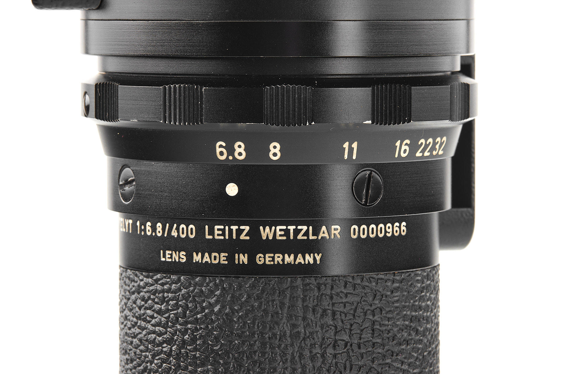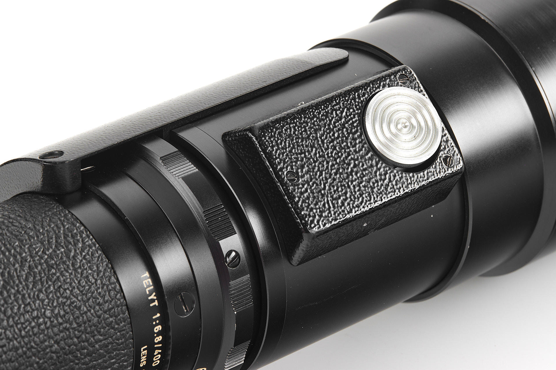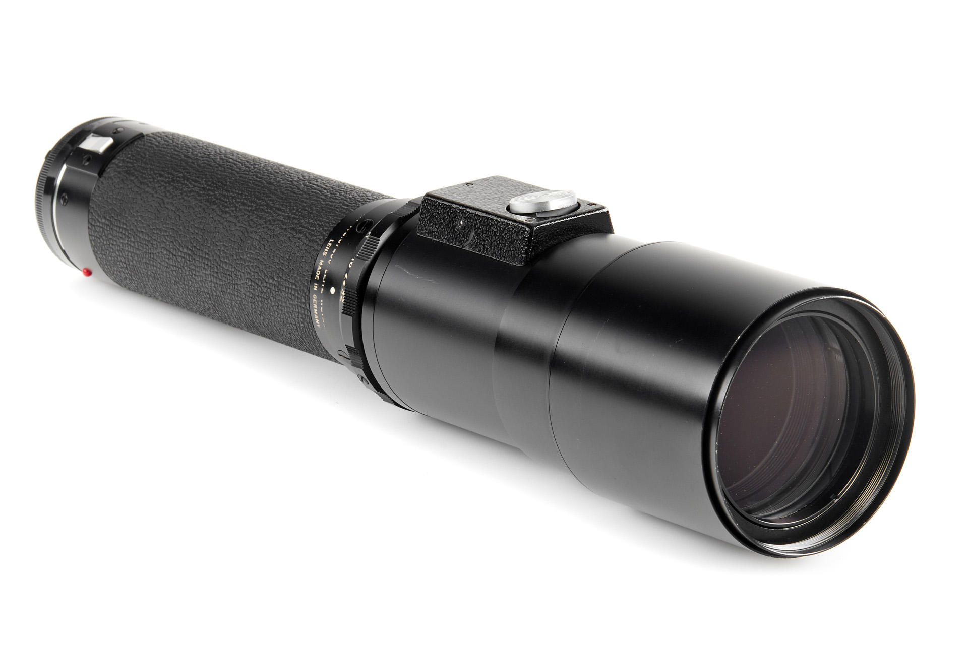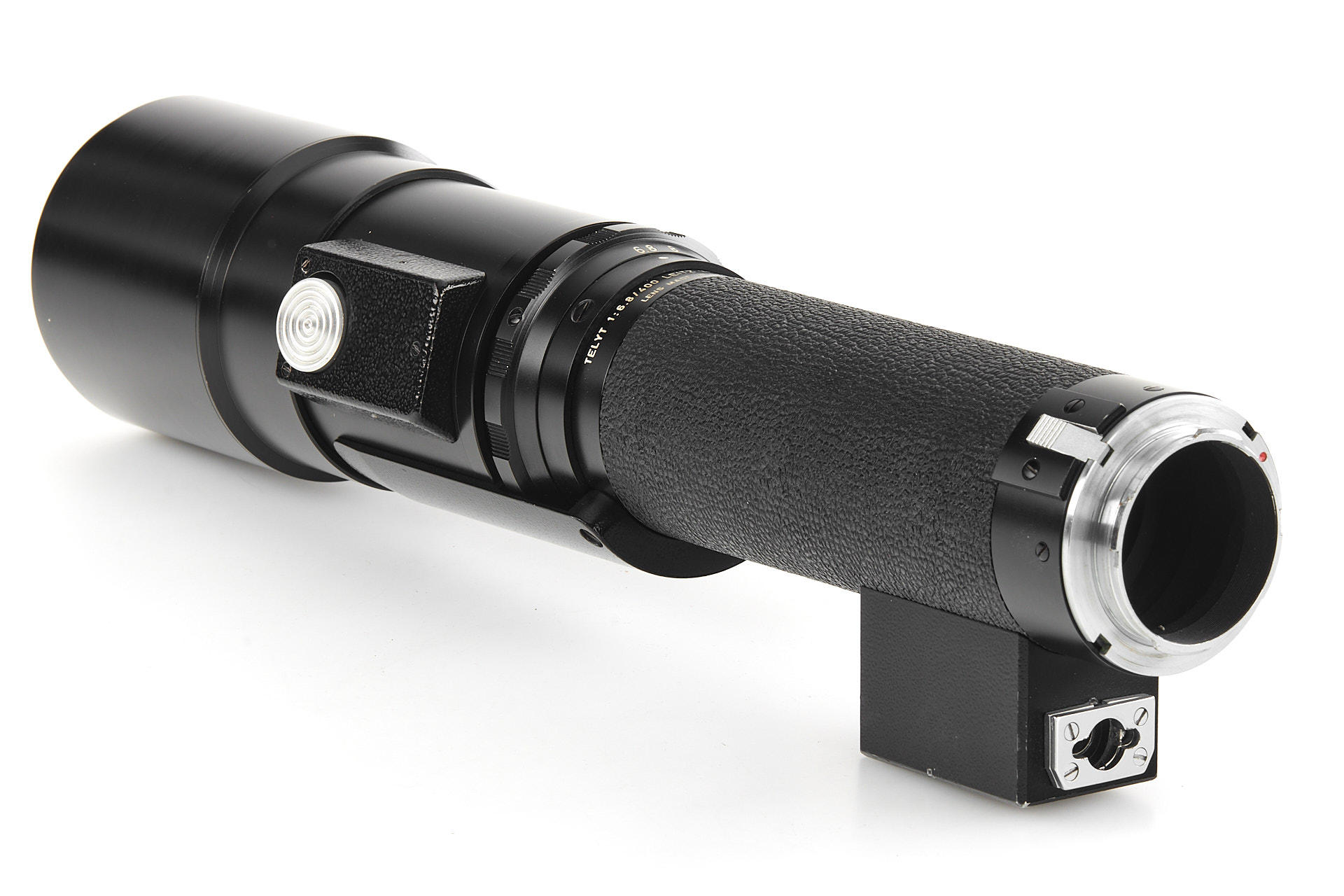 Very rare prototype of Telyt 6.8/400mm in Visoflex mount, non-detachable lens head, no filter slot, unique Vulkanite-covered body, in near-mint condition, with very good optics