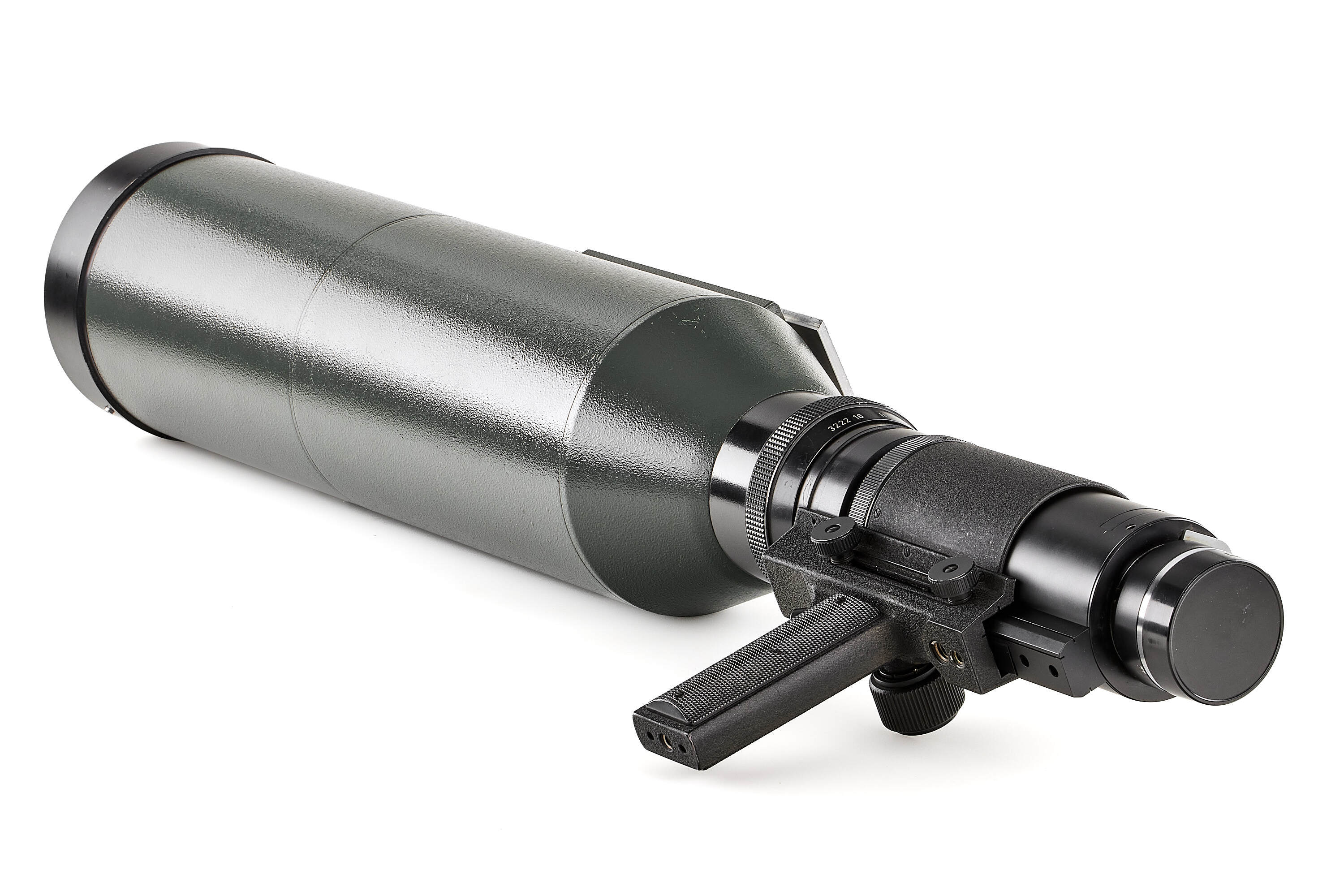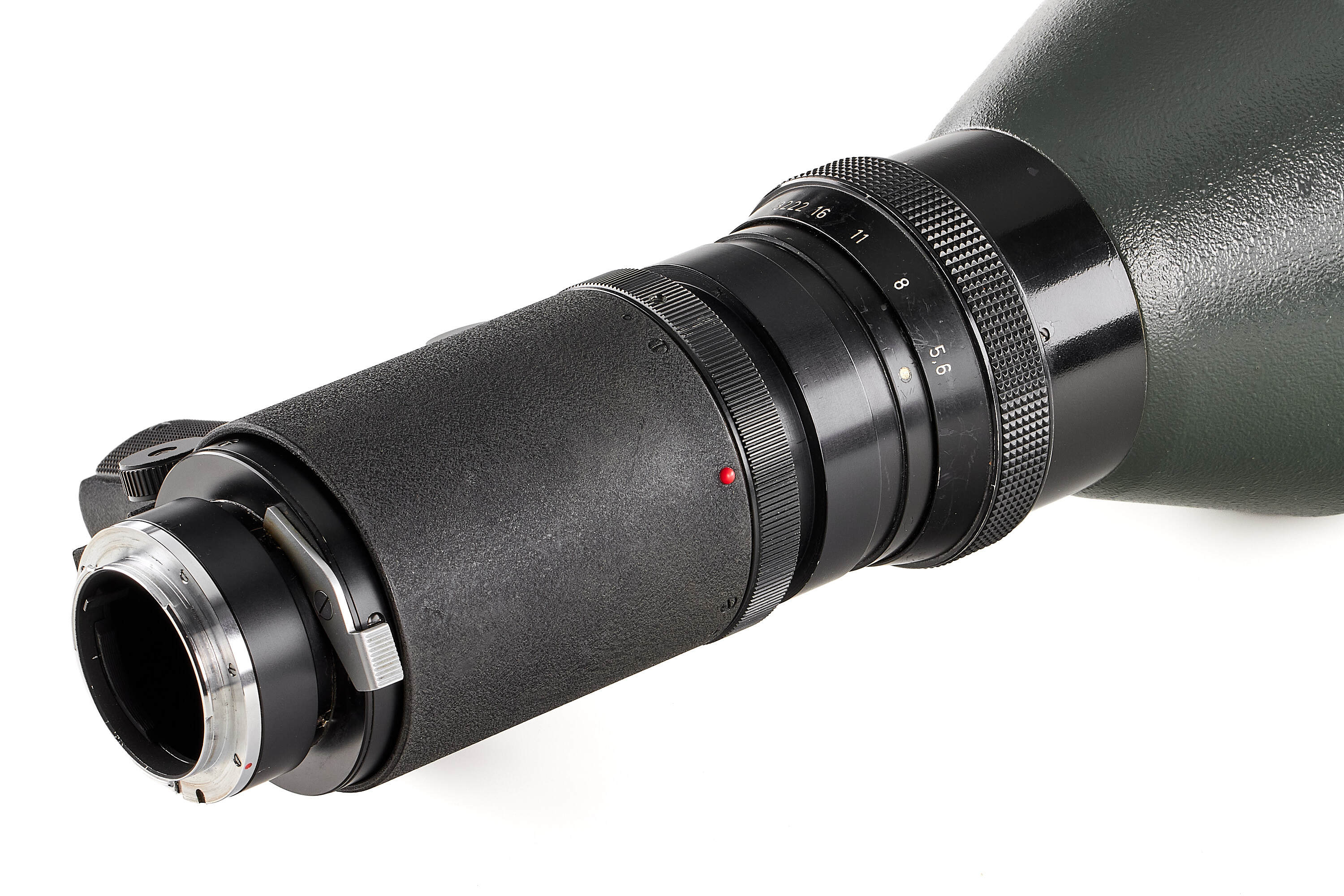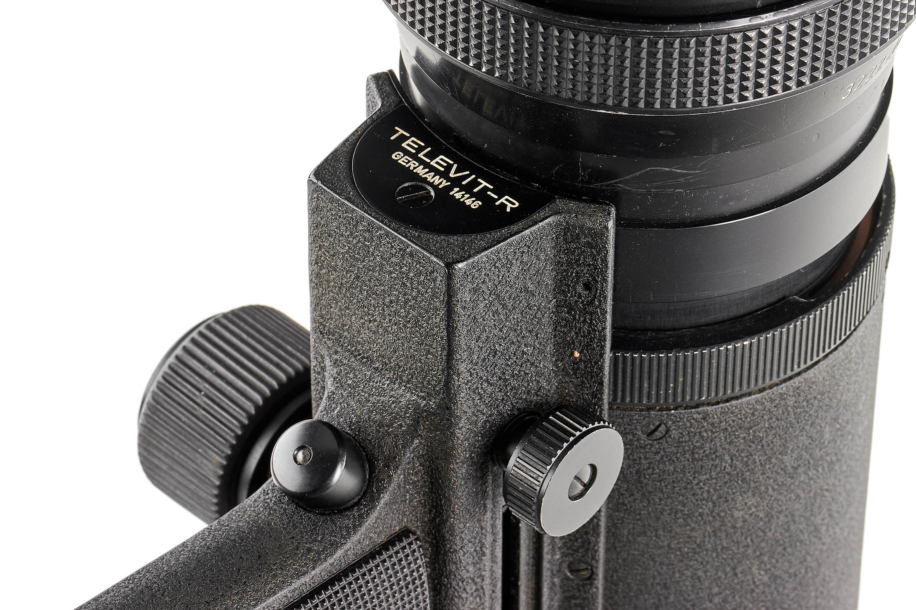 Unique unnumbered prototype 800mm Telyt-S in black/green paint finish, with quick-focusing adapter TELEVIT-R 14146. Special rail on the top (probably a provision for a carrying handle), no serial number engraved. In very good condition.