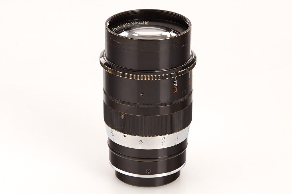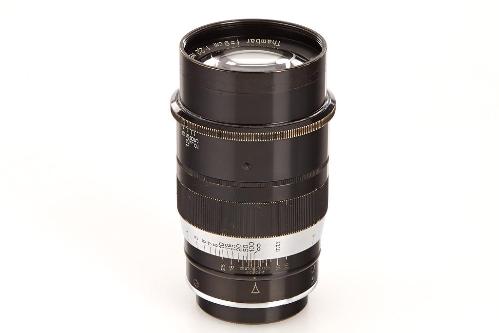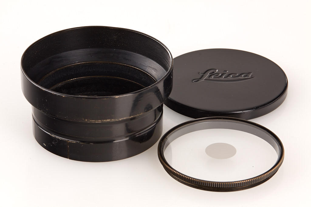 very early Thambar from the first production year in very fine condition with clean lenses and original spot filter, hood, both caps, original red maker's box, POOFX and POOGL filter in maker's boxes