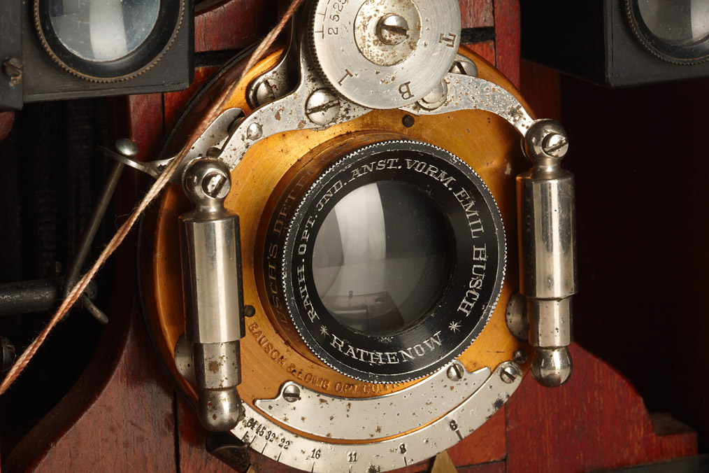 probably a prototype, 9x11cm falling plate magazine camera with Busch lens in Bausch & Lomb shutter, inside marked: TEST no. 20210 British Make 3, in good condition