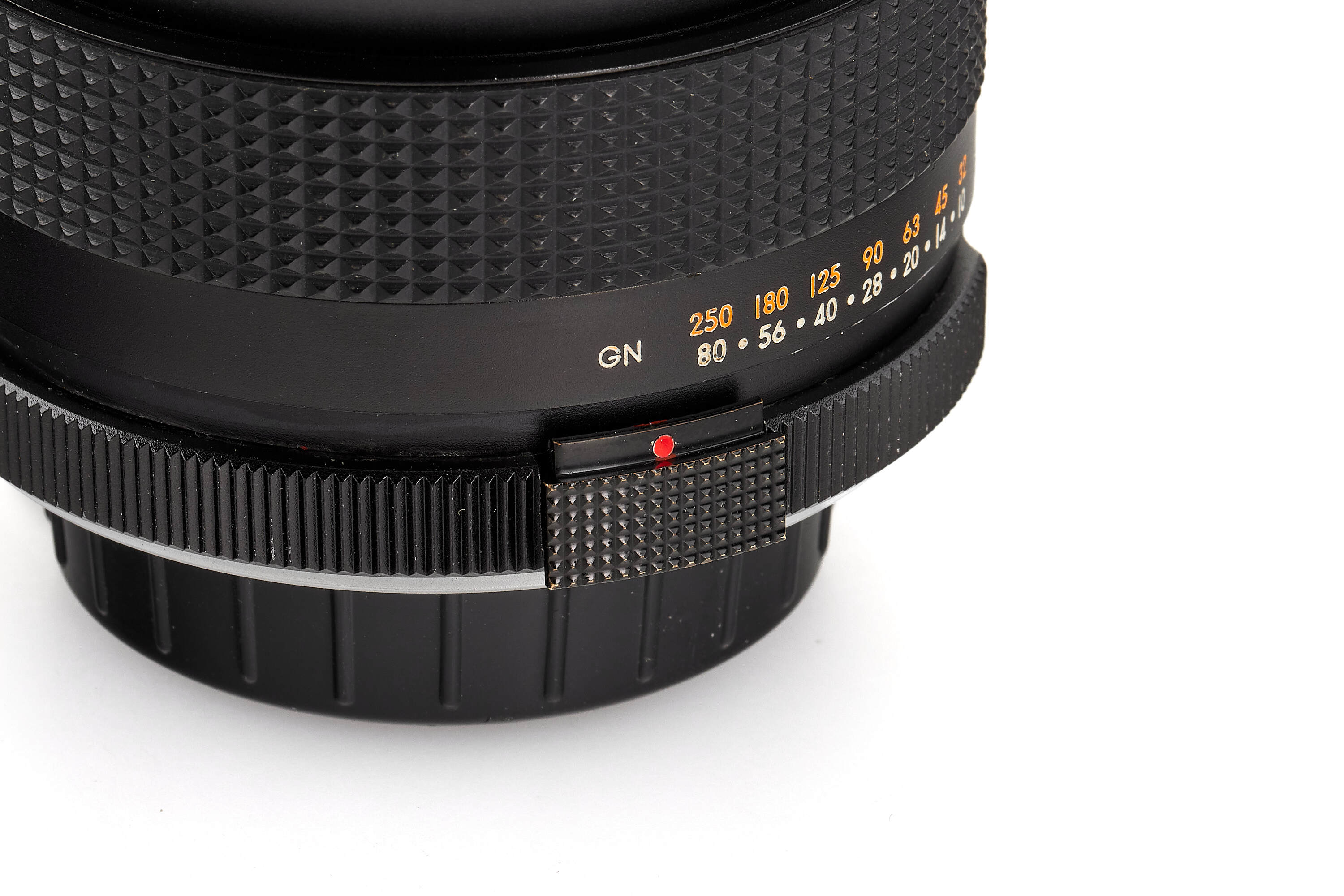 Extremely rare Topcor RE GN 35 mm f/1.8, a special variant of the RE Topcor series, believed to have been produced only in extremely small numbers. While GN versions are known in 50 mm, the 35 mm f/1.8 is virtually undocumented—this is only the second recorded example. In fine condition with clean optics, with original caps, it represents an exceptional rarity in the Topcon system.