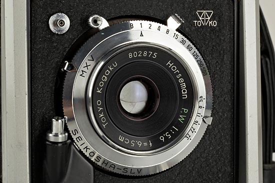 6x9cm, press camera with coupled rangefinder, Horseman P.W 5.6/6.5cm no.802875 in Seikosha-SLV shutter, focusing screen adapter, good condition