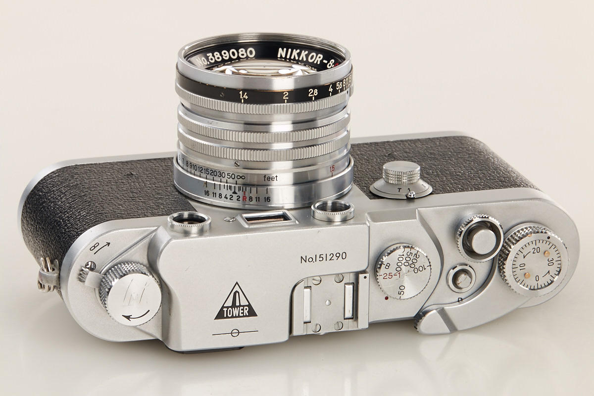 rare Leica copy, in fact a Nicca type 5 with lever wind, delivered for Sears Roebuck, in very good condition with matching Nikkor-S.C. 1.4/5cm no.389080, Tower case
