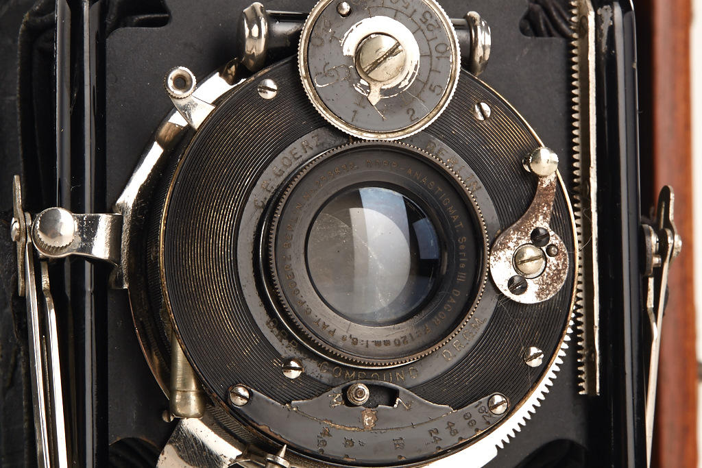 (1) Wünsche Reicka Tropical, 9x12cm, rare tropical version in fine condition with Goerz Dopp.-Anastigmat 6.8/120mm Serie III no.233832 in Compound shutter, ground glass holder, film pack holder, plate holder, (2) Agfa Isolar Lu
