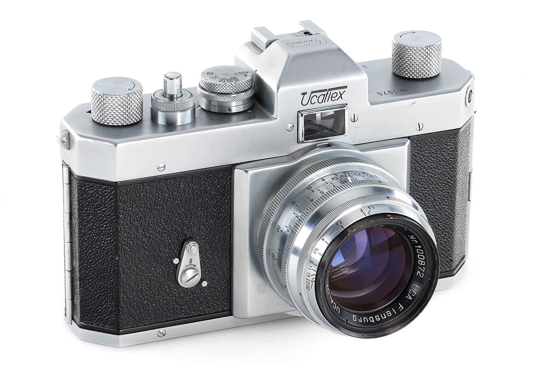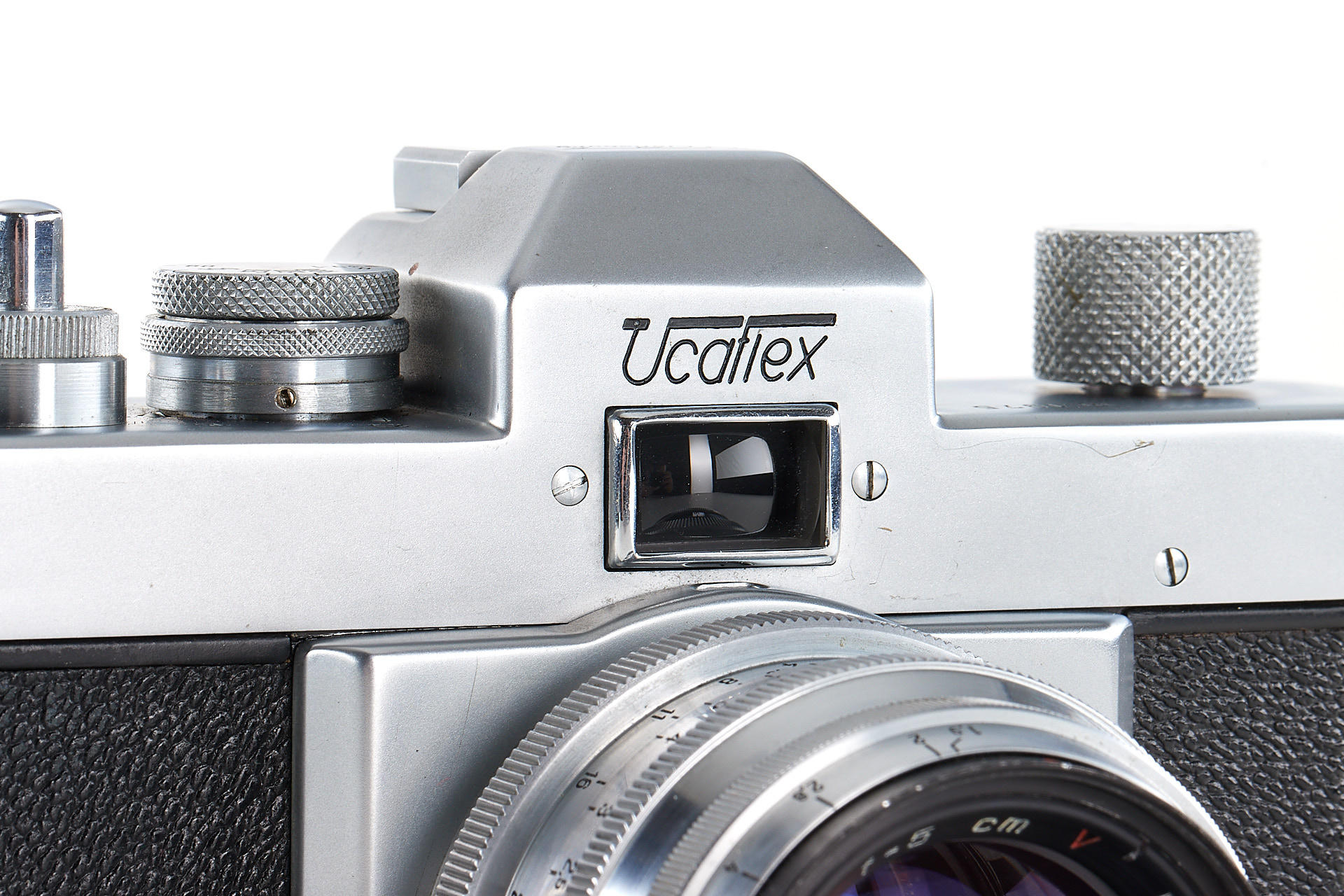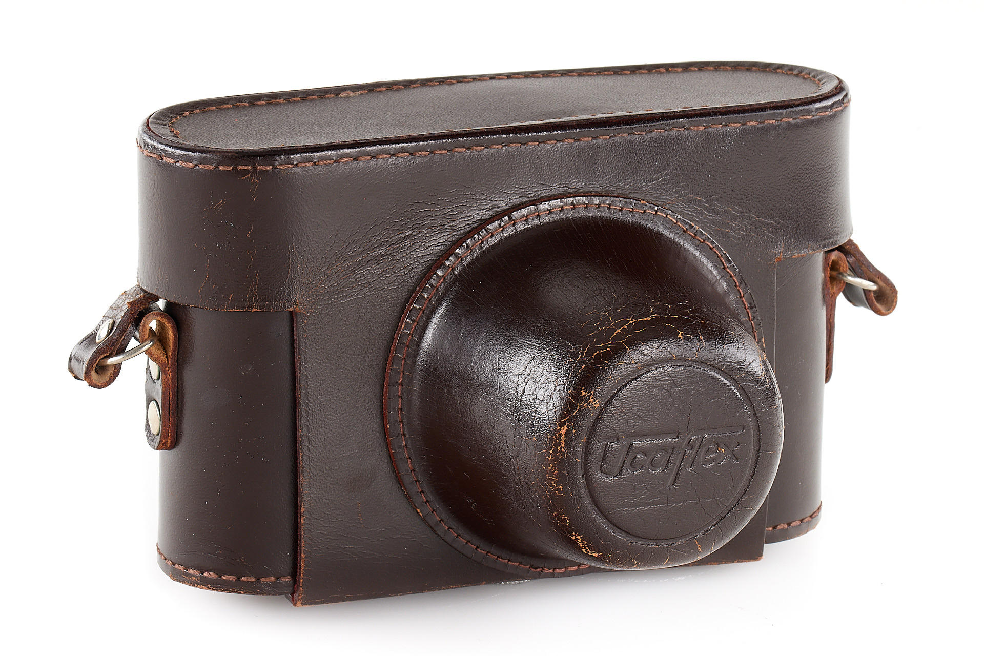 very rare 35mm camera combining features of SLR and viewfinder cameras, in near mint condition, with very rare M40 mount Ucalux 1.9/5cm no.100872, good optics only showing few and light cleaning marks, with original ever ready case