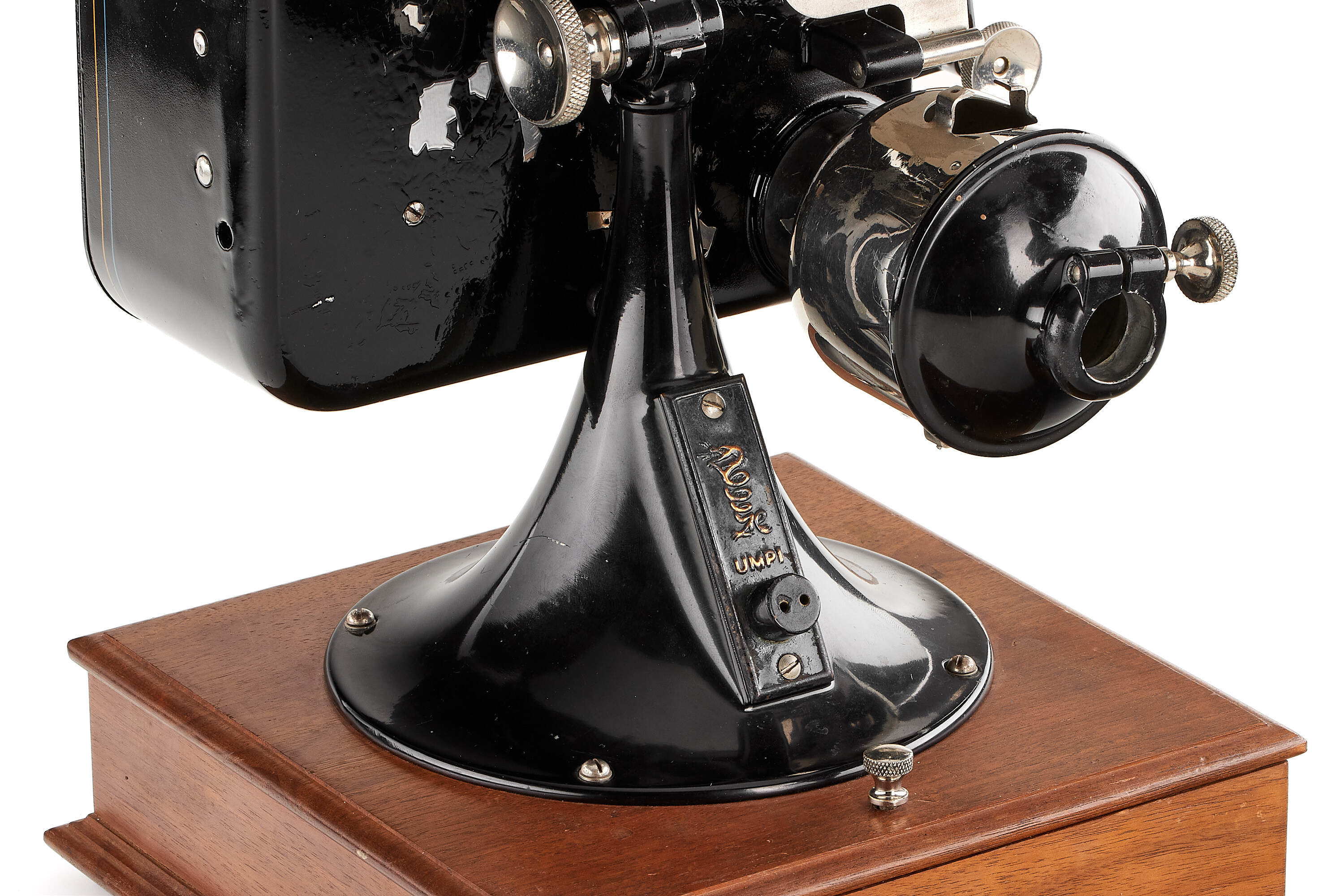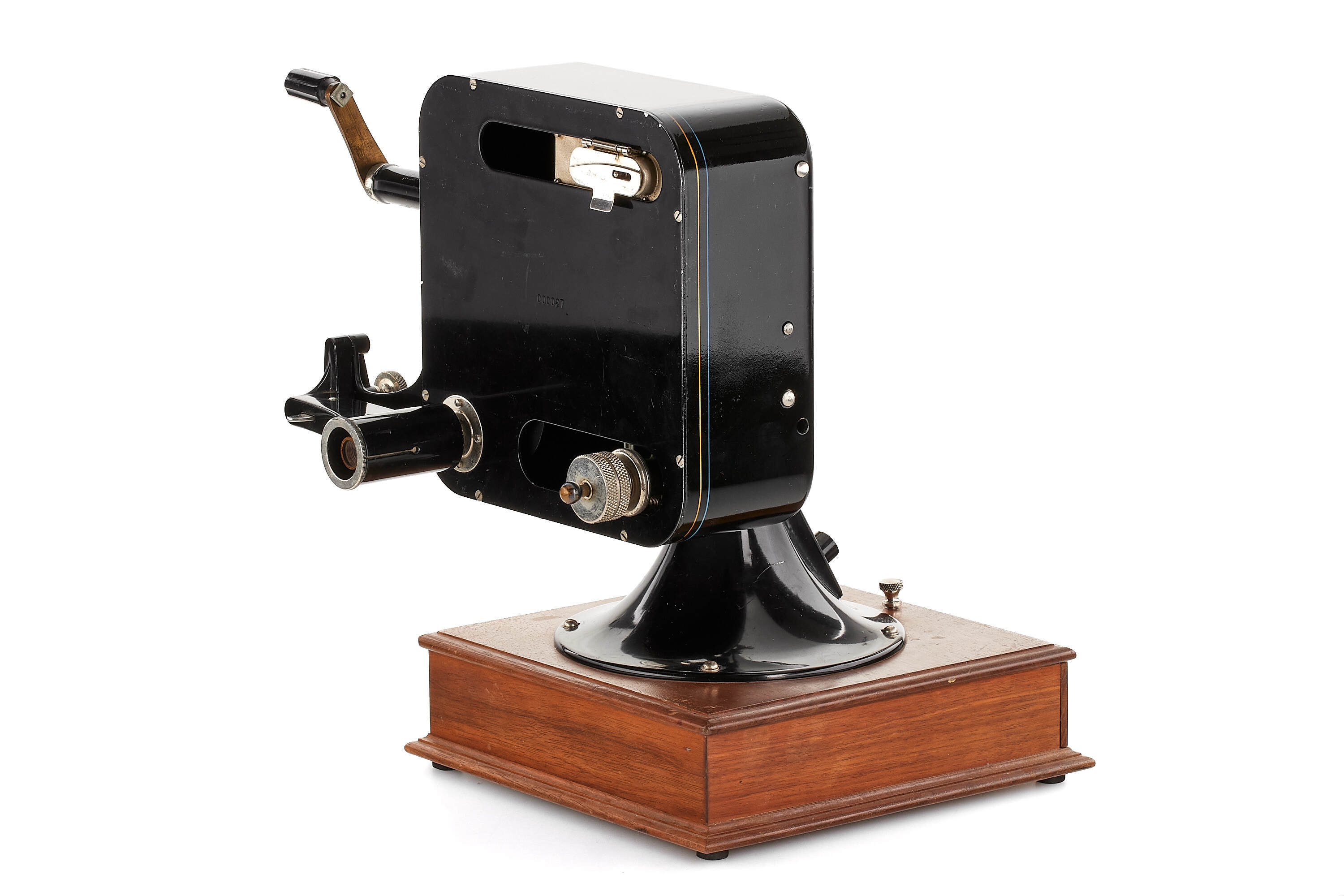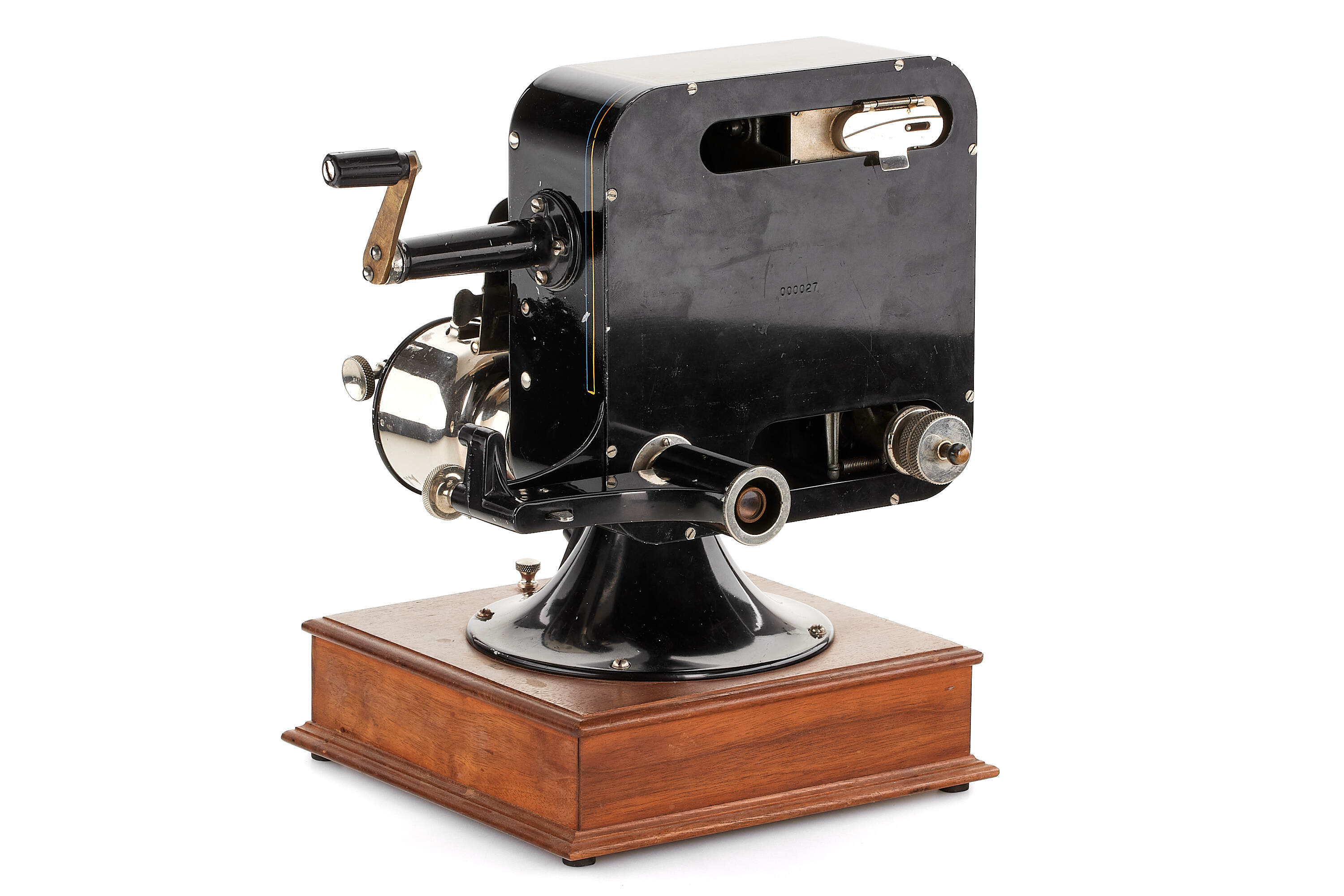 The example offered here is in excellent condition (the crank has been repaired in the past) and is accompanied by four original film discs. It is one of the rarest and most attractive motion picture projectors ever made.
