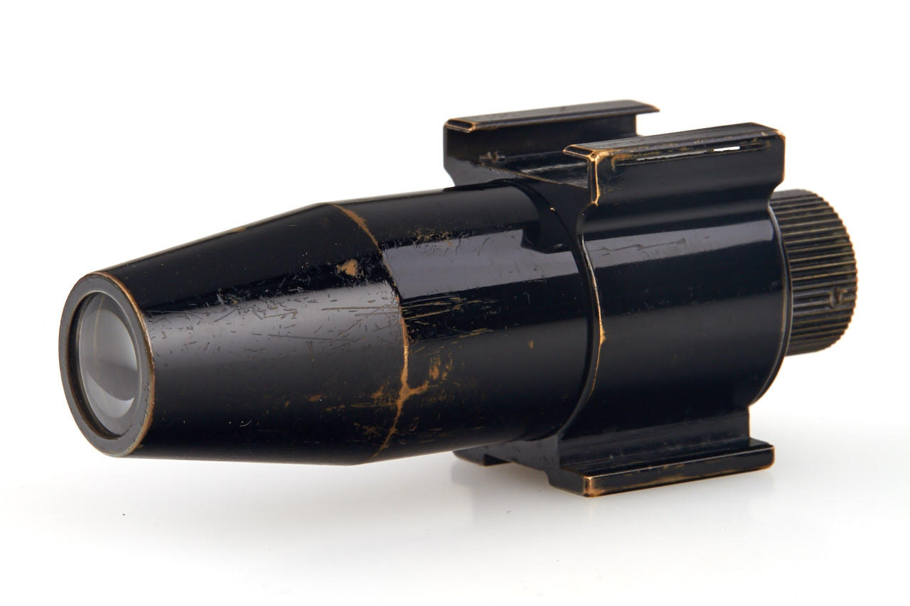 rare torpedo finder with frames for 3.5, 5, 7.3 and 10.5cm lenses, very good original condition (slight brassing on the edges), clean optics and good view, with early red maker's box