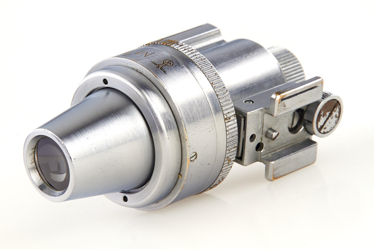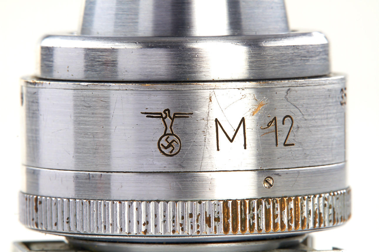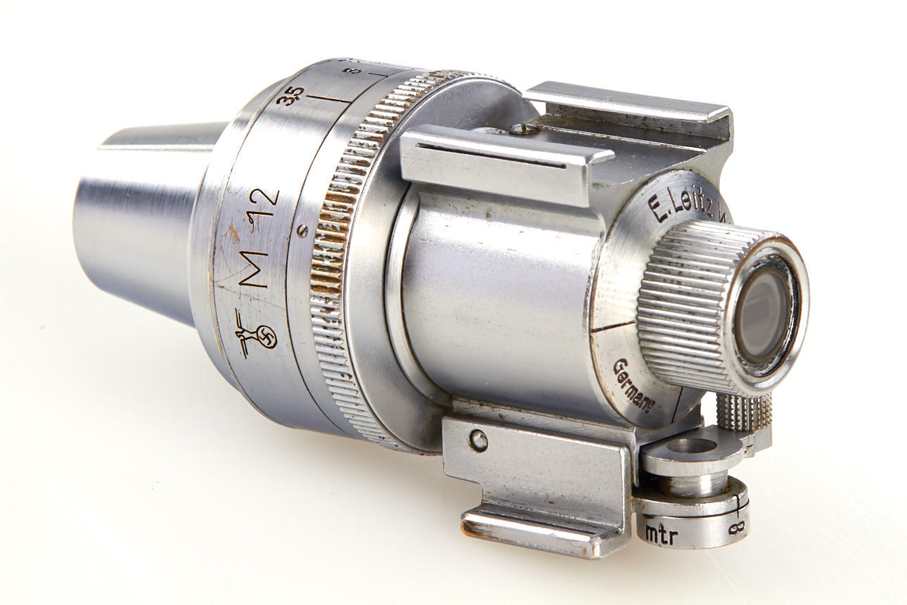 chrome viewfinder with very rare military engraving 'M12' for German Navy (Marine), also engraved with eagle and swastika, in excellent condition, with red maker's box - see Lager I Cameras page 94 for a similar finder engraved 'M18'
