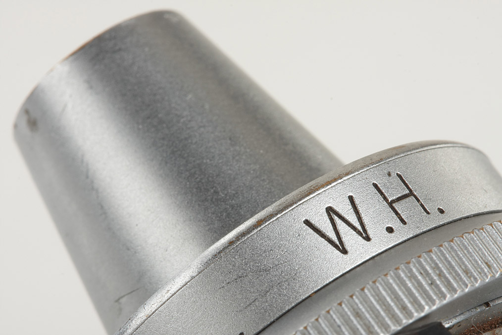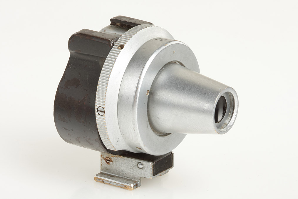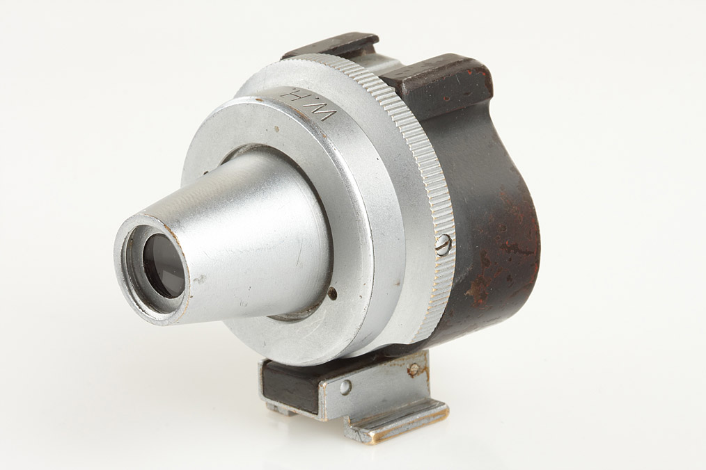 Extremely rare finder for use with IIIc grey W.H. with 13.5cm Hektor lens. It is used reversed and produces a magnified image (3x) showing the field converted by the 13.5cm Hektor. Engraved W.H. on top. Very few of these finders are know to exist, it is in fine original condition