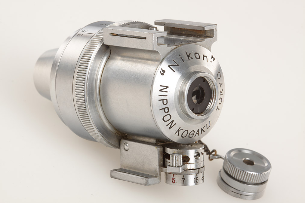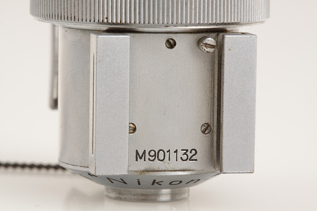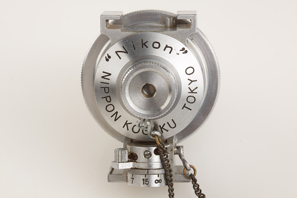 very rare finder (type 3b) for Nikon M in original condition with eyepiece and chain, engraved: "Nikon" NIPPON KOGAKU TOKYO, 'MADE IN OCCUPIED JAPAN' on the shoe, for focal lengths 3.5/5/8.5/13,5cm - ex Tad Sato collection