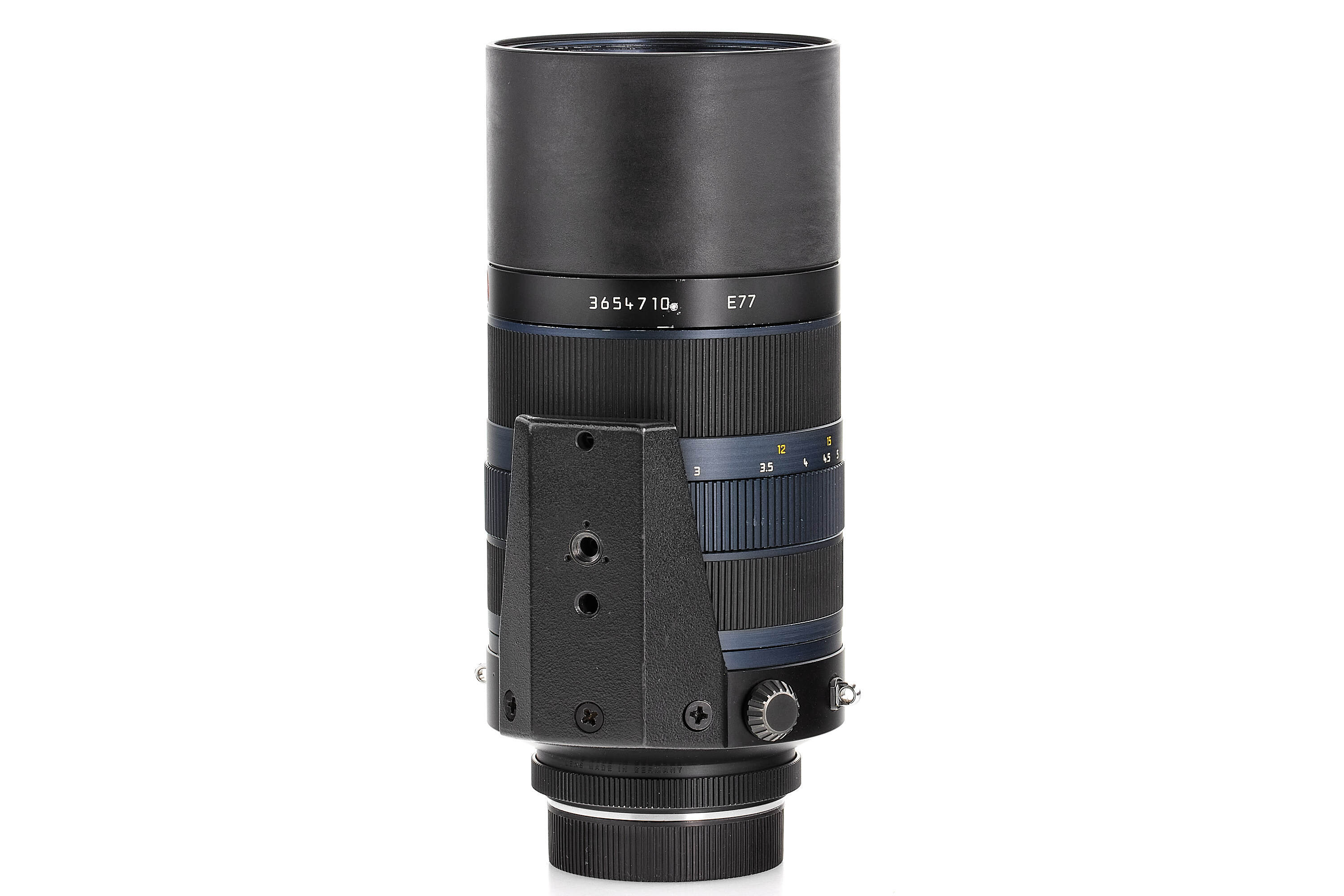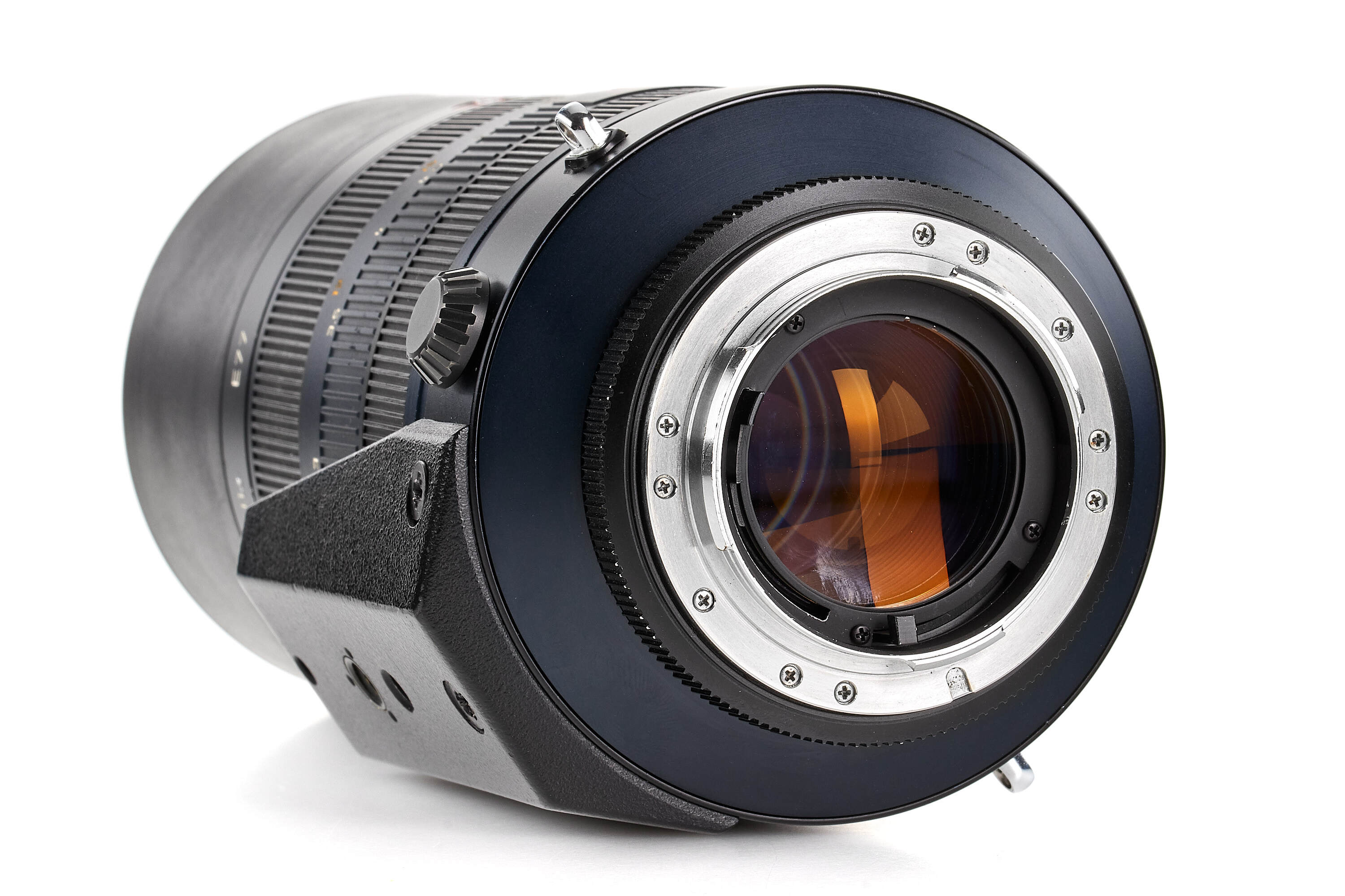 The prototype presented here exhibits several notable differences from the production version, including a larger tripod mount, a straight barrel design, and visible machining marks on the metal components. It is fully functional and in excellent condition. To our knowledge, this is the only example of a prototype 70–180 mm APO ever seen!