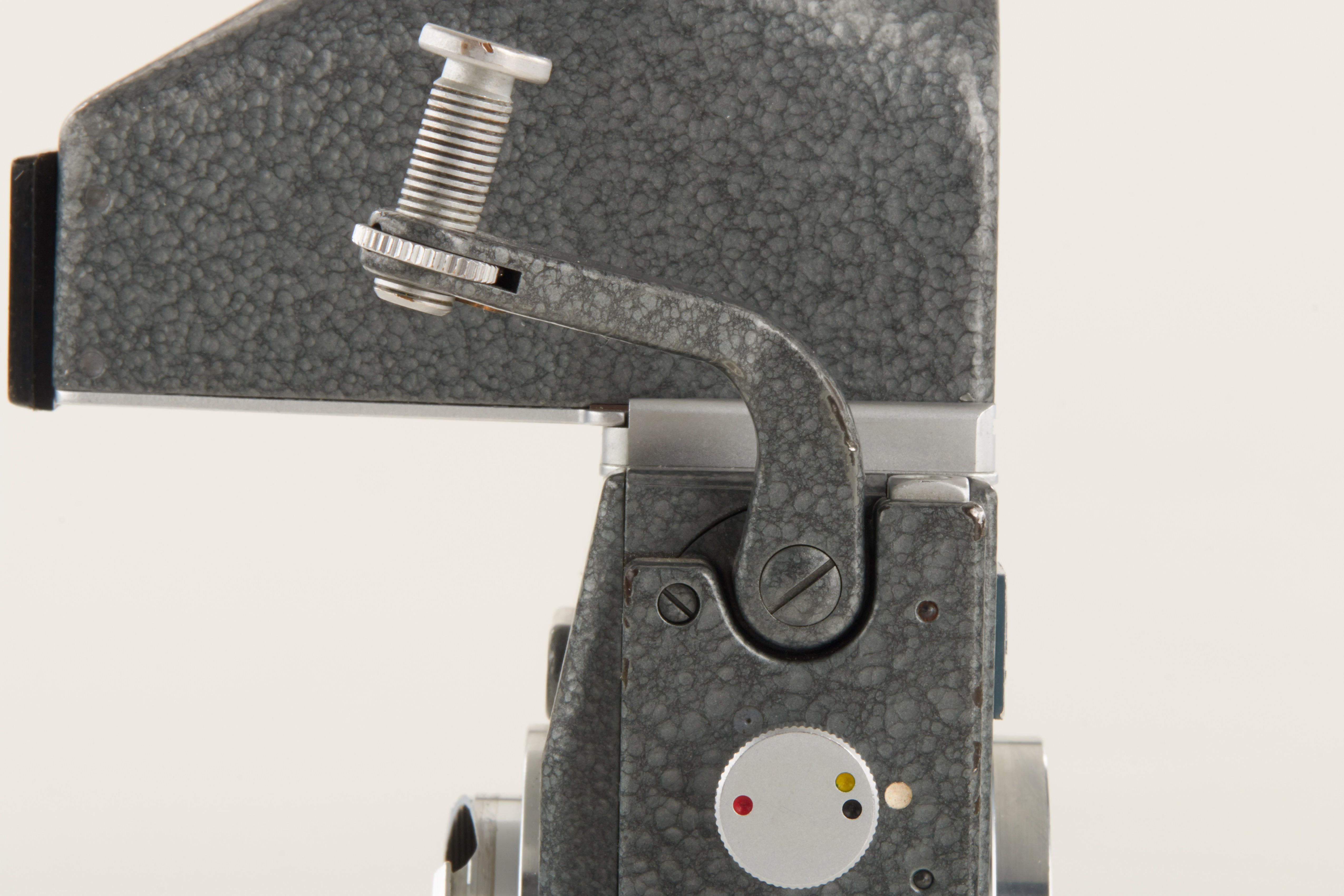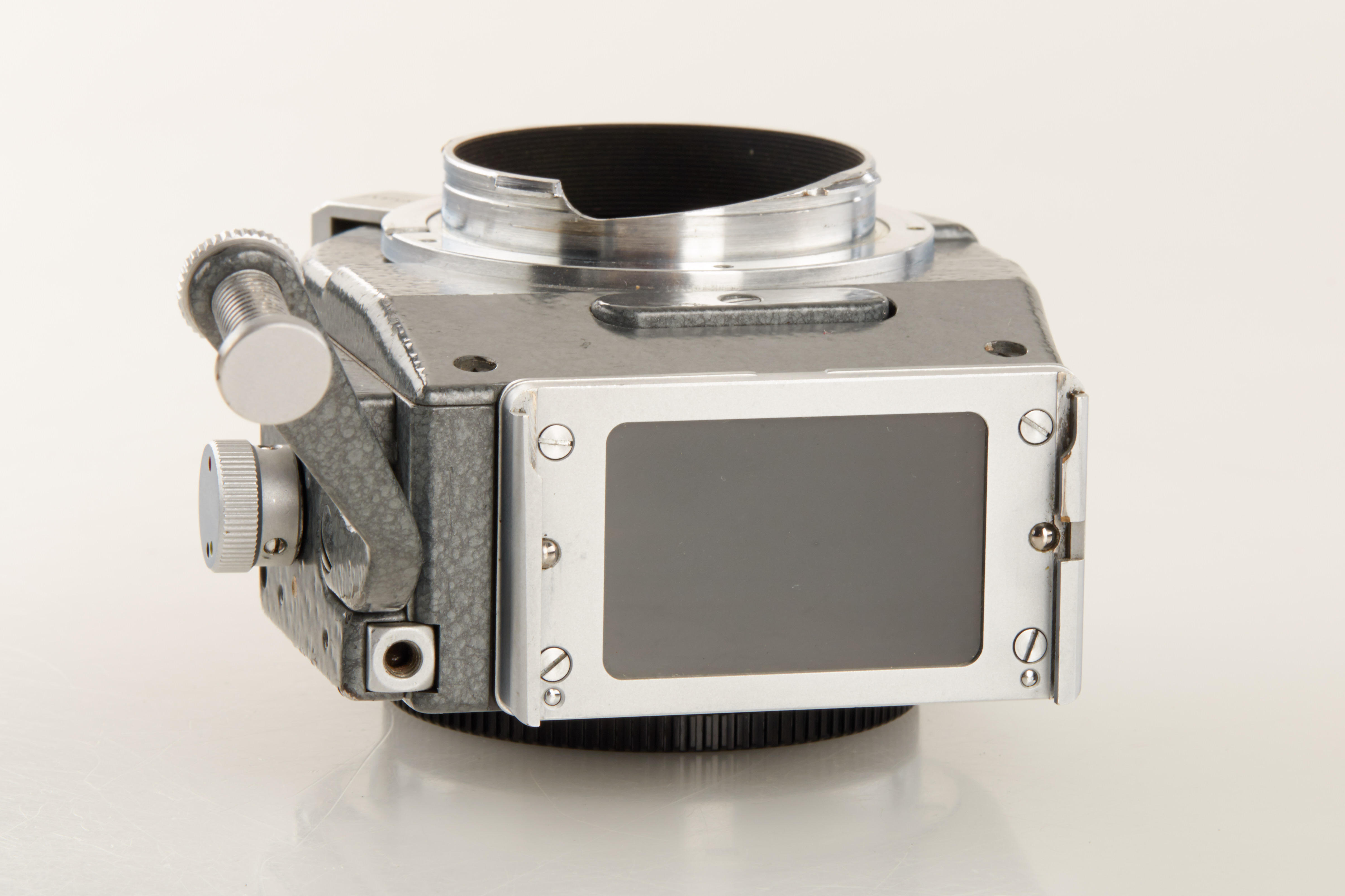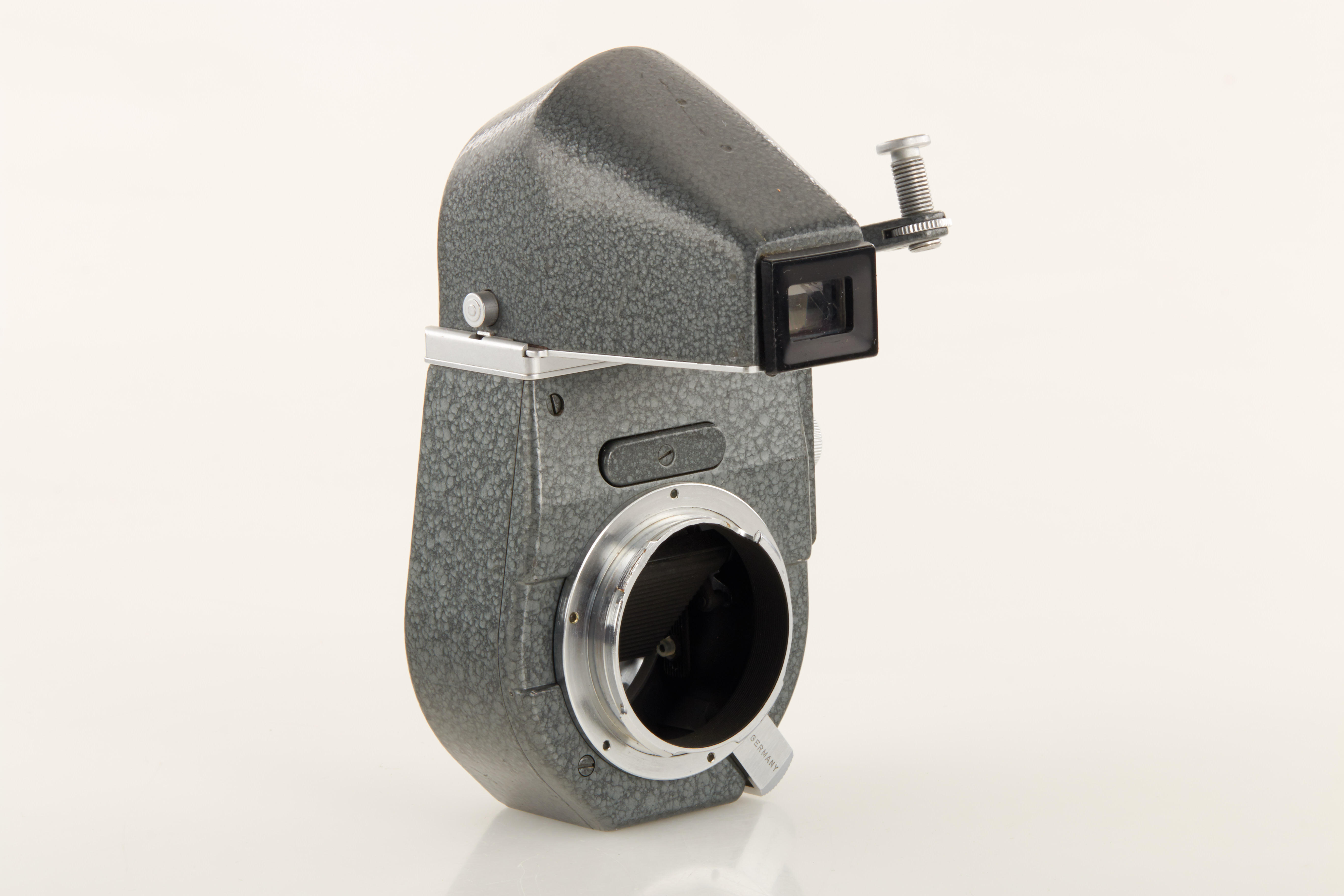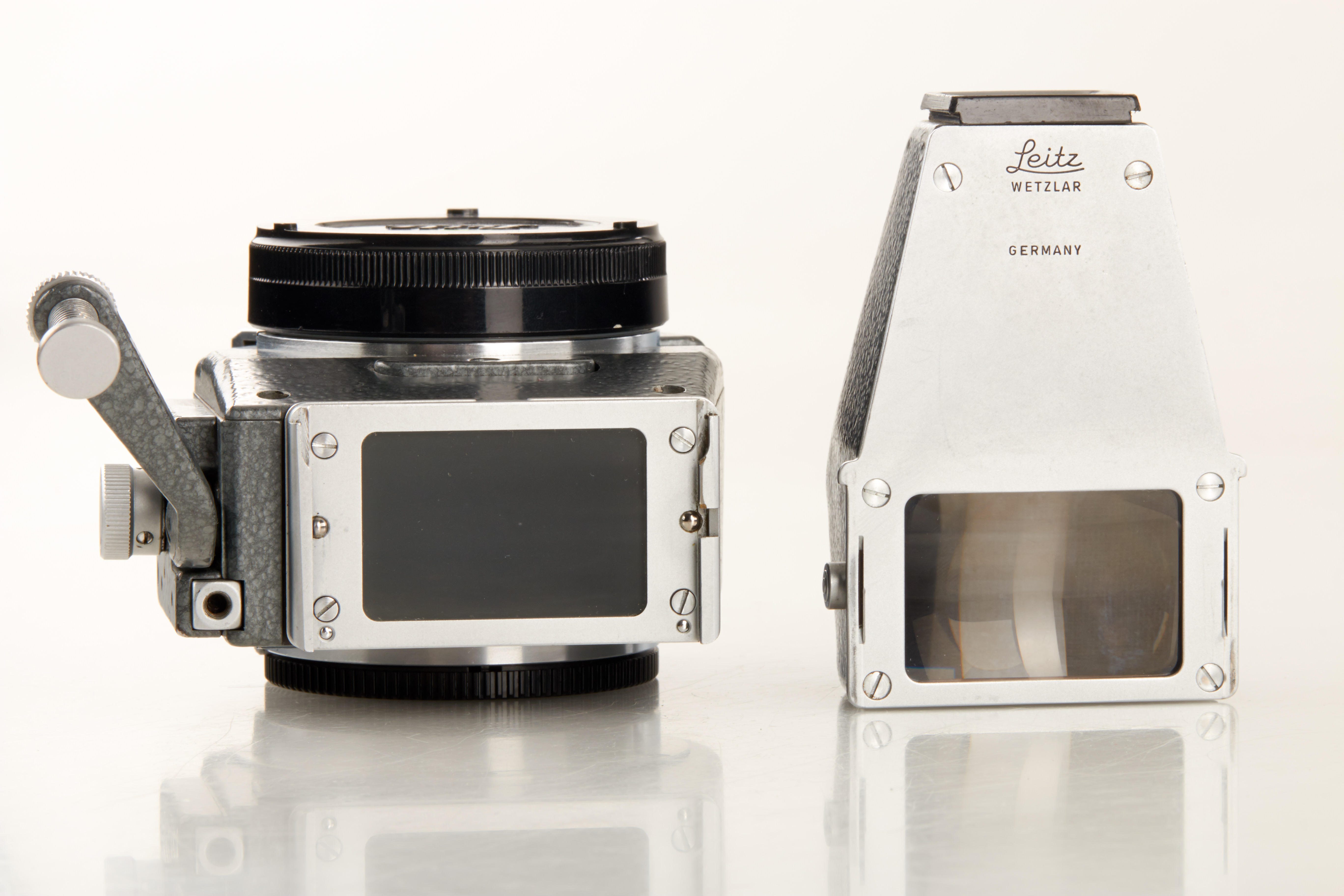 100% original grey hammer tone Visoflex III with matching prism for grey MD, in near mint condition, 6 o'clock cut-out on flange (purpose unknown), see 'Lager Vol.I' p.221, Wilhelm Albert 'Geburtstage der Leitz-Foto-Konstruktionen ab 1927' p.220 - ex Bawendi collection