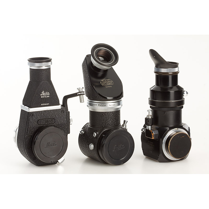 (1) PLOOT Mirror Reflex Housing no.7009 in fine condition with both caps, (2) Visoflex I with M mount no.14583 with PEGOO magnifier, rear cap, (3) Visoflex III with OTVXO magnifier and chrome OTZFO universal focusing mount, rear cap (3)