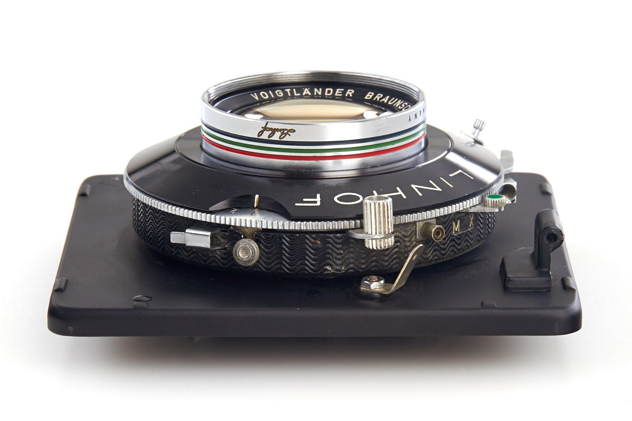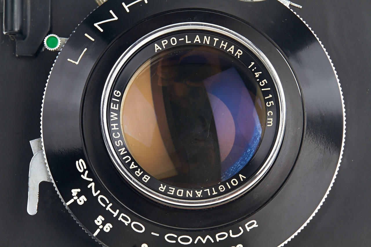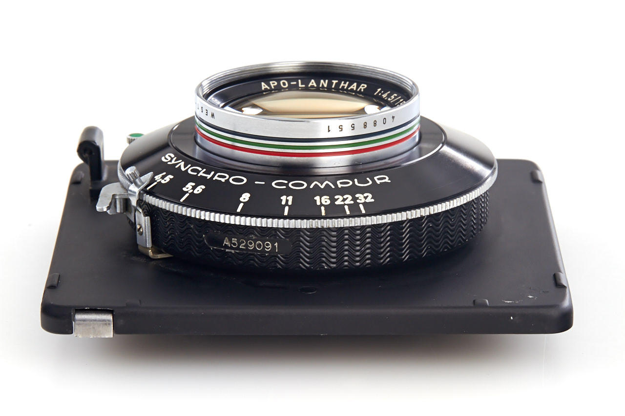 in near mint condition with clean optics, in Linhof Synchro-Compur shutter and on Graflex lens board