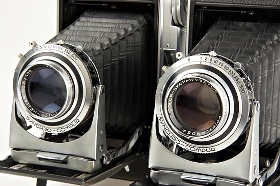 Bessa II with Color-Skopar 3.5/105mm in Synchro-Compur (case, original maker's box, condition A-), Bessa II with Color-Heliar 3.5/105mm in Synchro-Compur (case, condition B) (2)