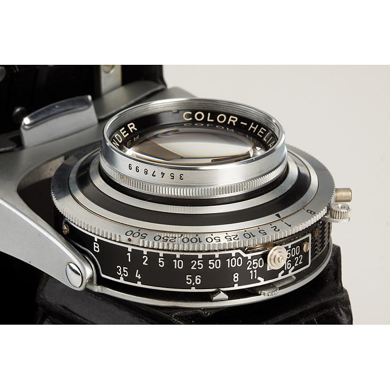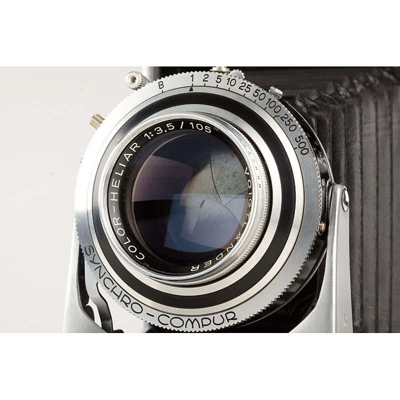 with Color-Heliar 3.5/105mm in Synchro Compur shutter, apart from some wear on front door in mint condition, original case
