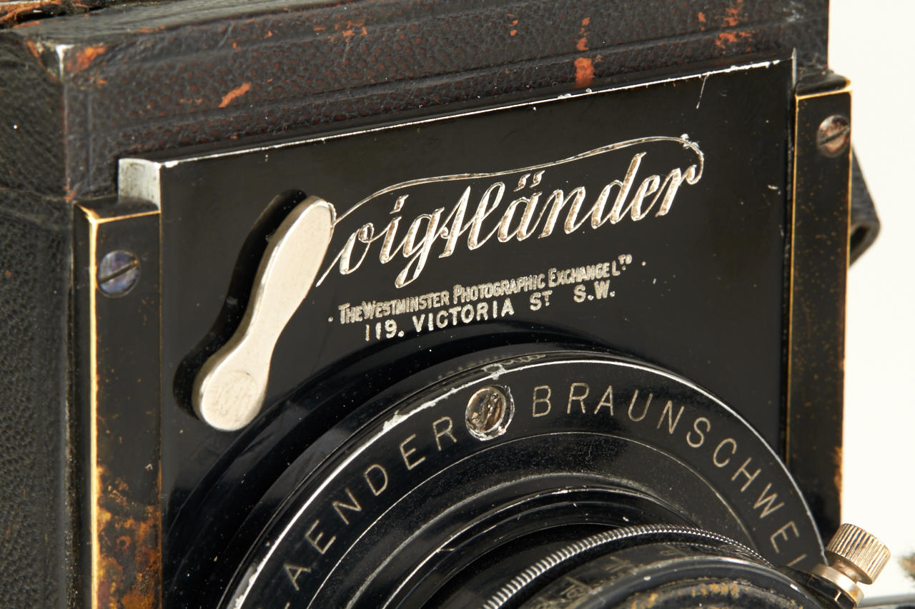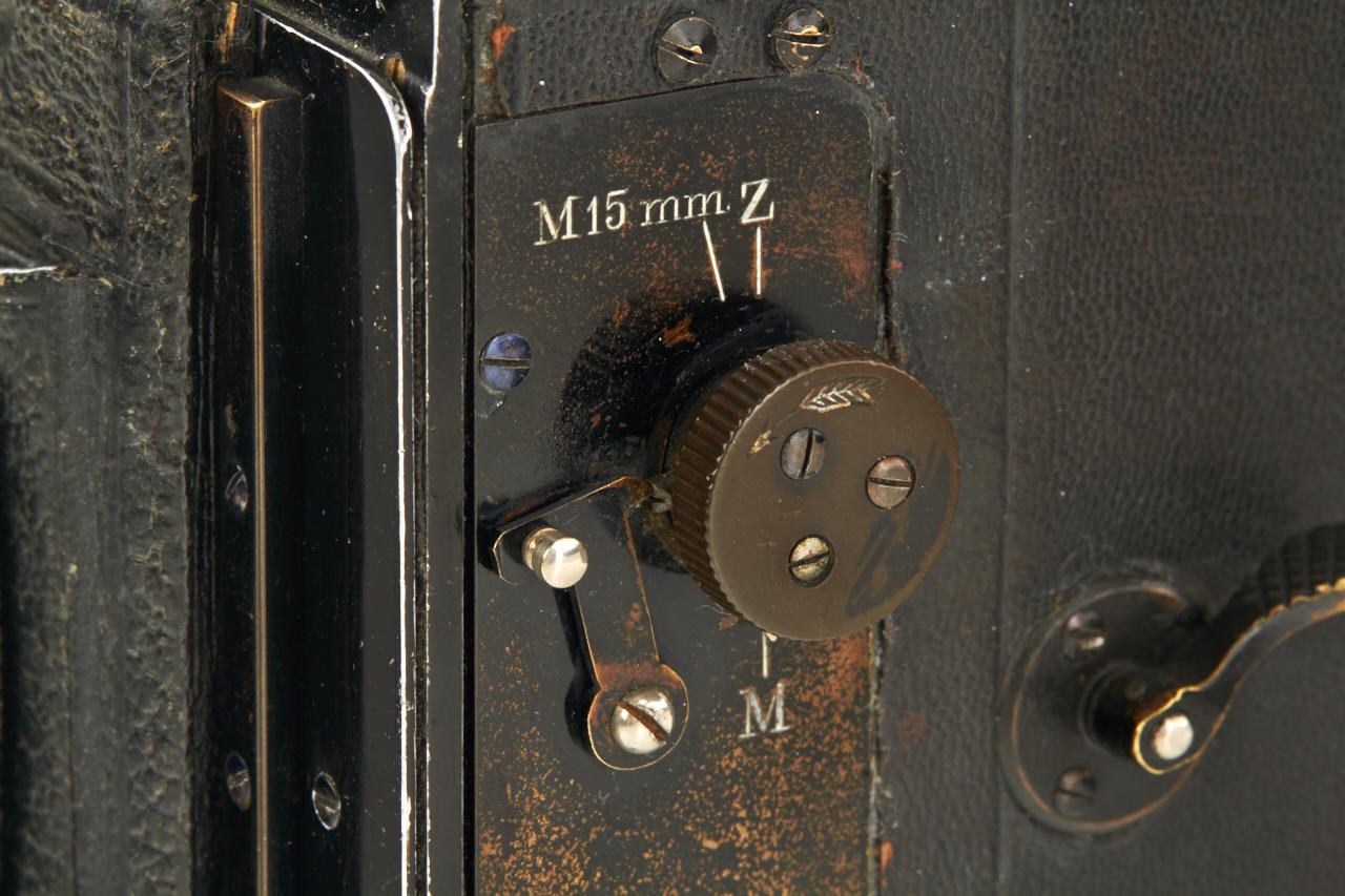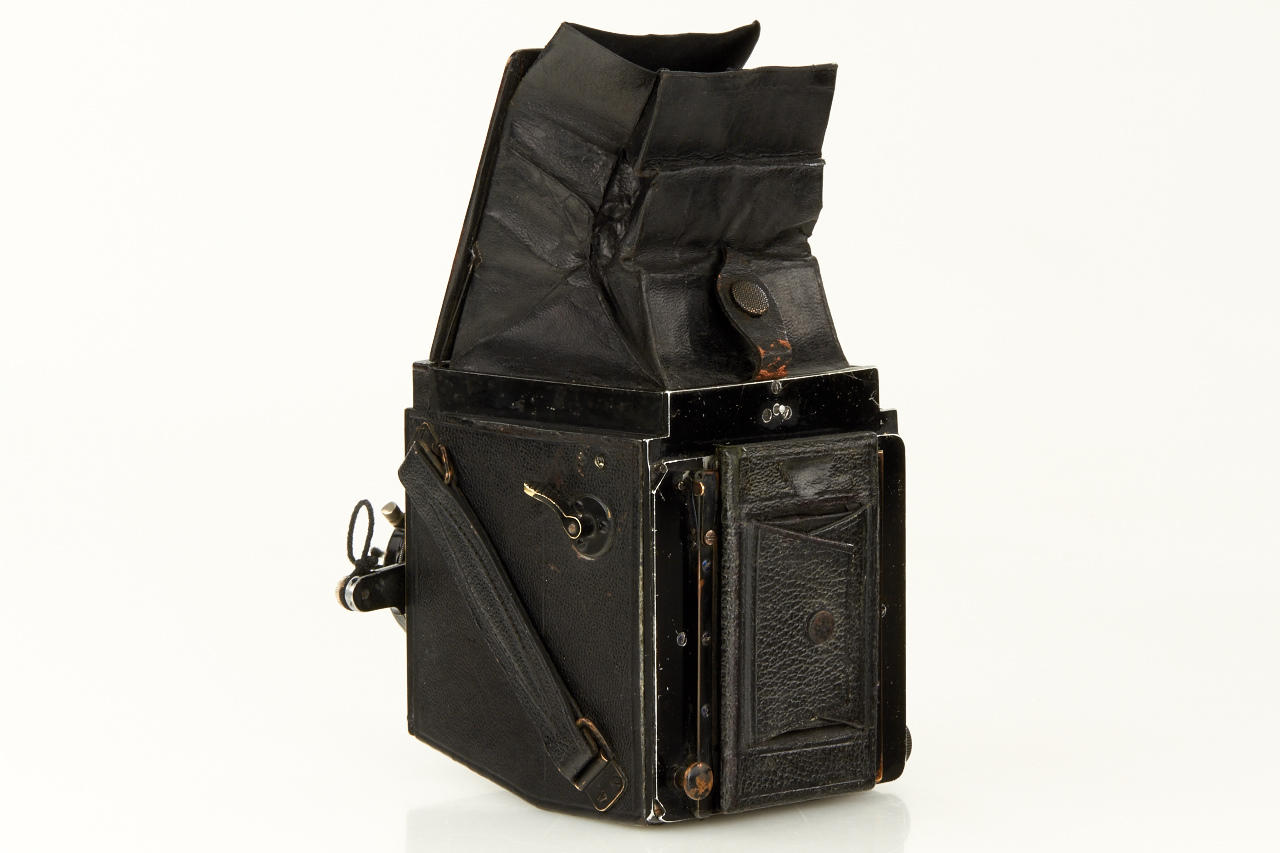 very rare, first miniature SLR for 4.5x6cm plates in good original condition, working focal plane shutter with Heliar 4.5/10cm no.98607 in helical focusing mount, original front cap