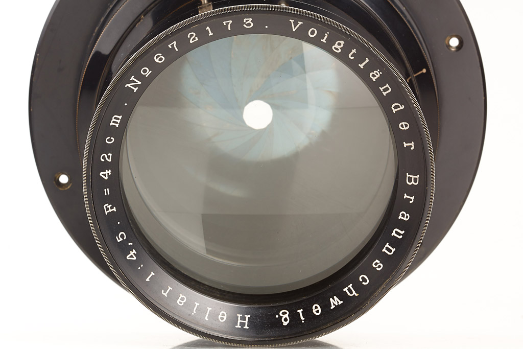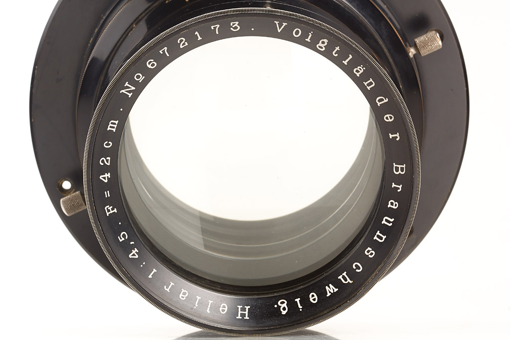 black painted brass Heliar with very good lenses, smooth and clean aperture, original mounting ring