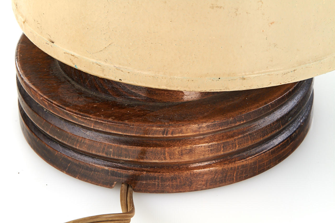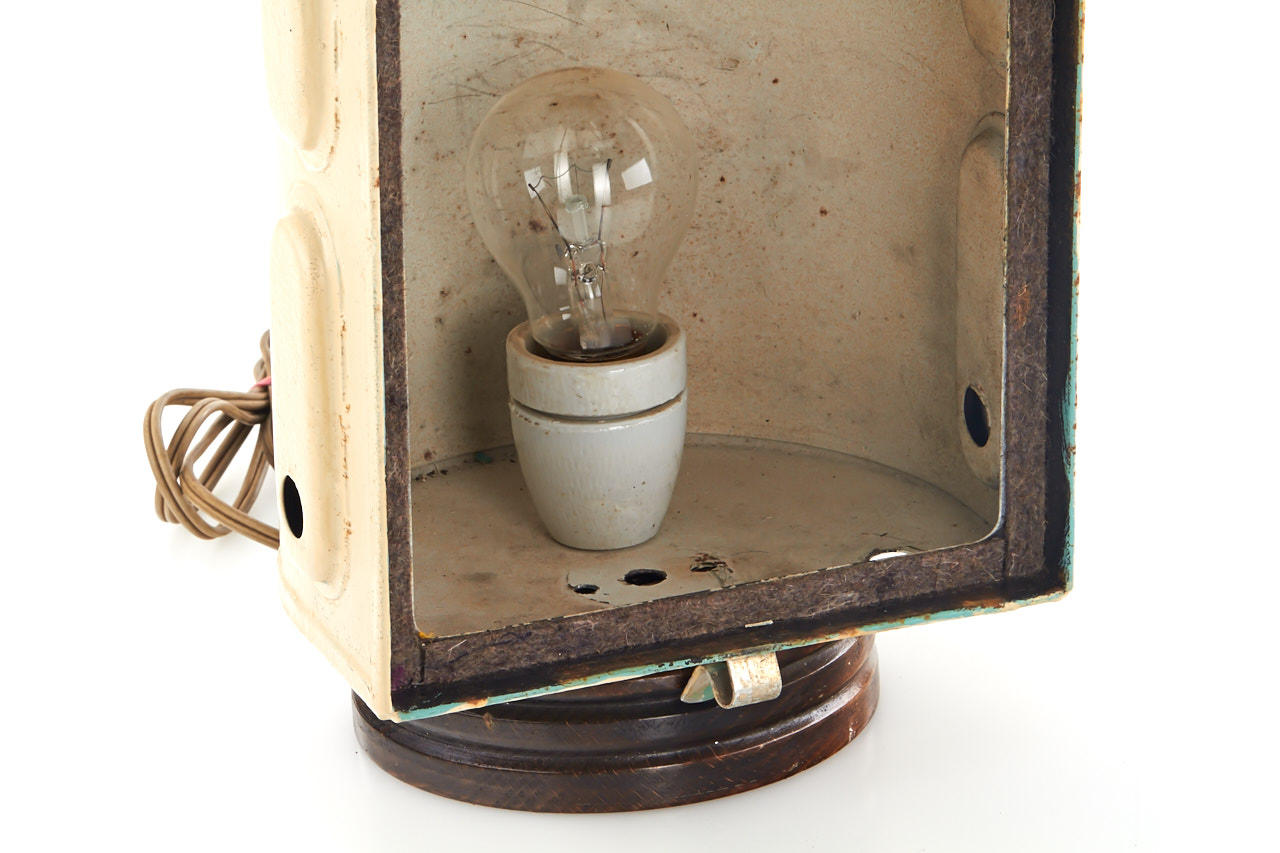 probably unique, early display lamp with well preserved 18x24cm glass plate, metal housing and wooden foot