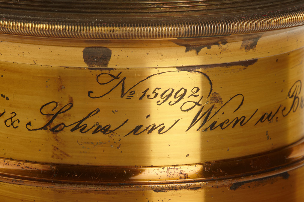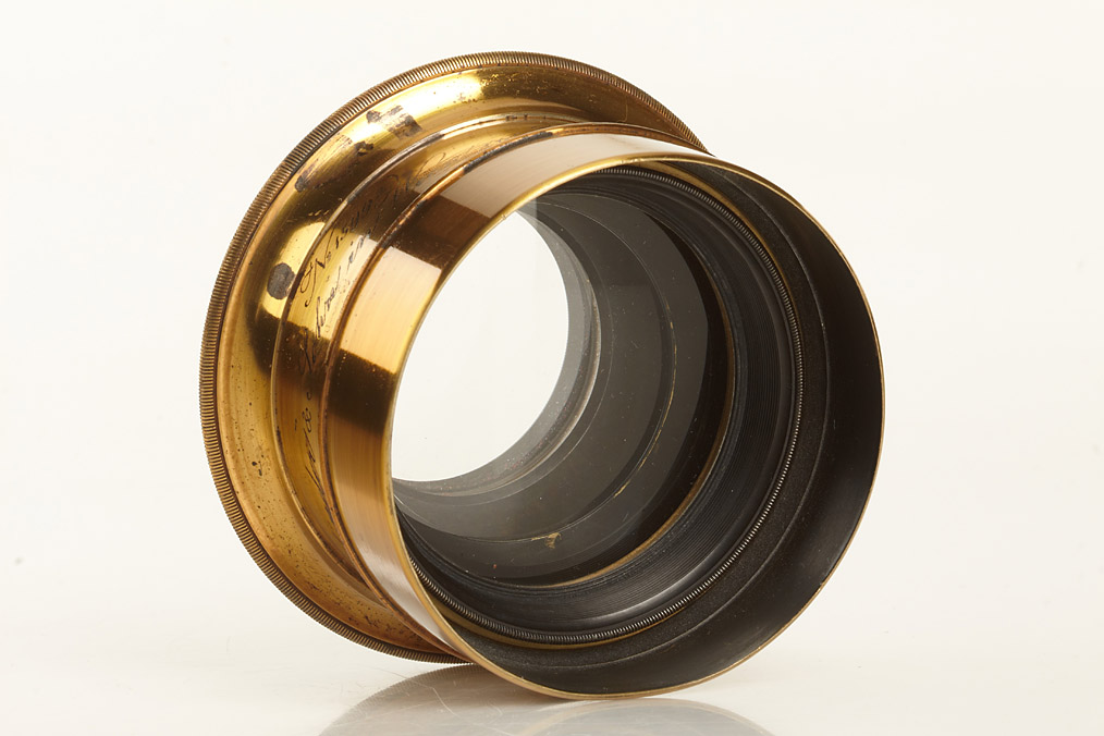 early brass Orthoscop (focal length approx. 52cm) engraved: Voigtländer & Sohn in Wien und Braunschweig, in fine condition - the Orthoscop is an important design as the first advanced outdoor lens in photography