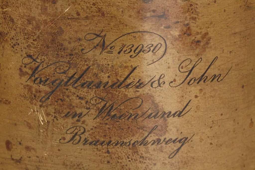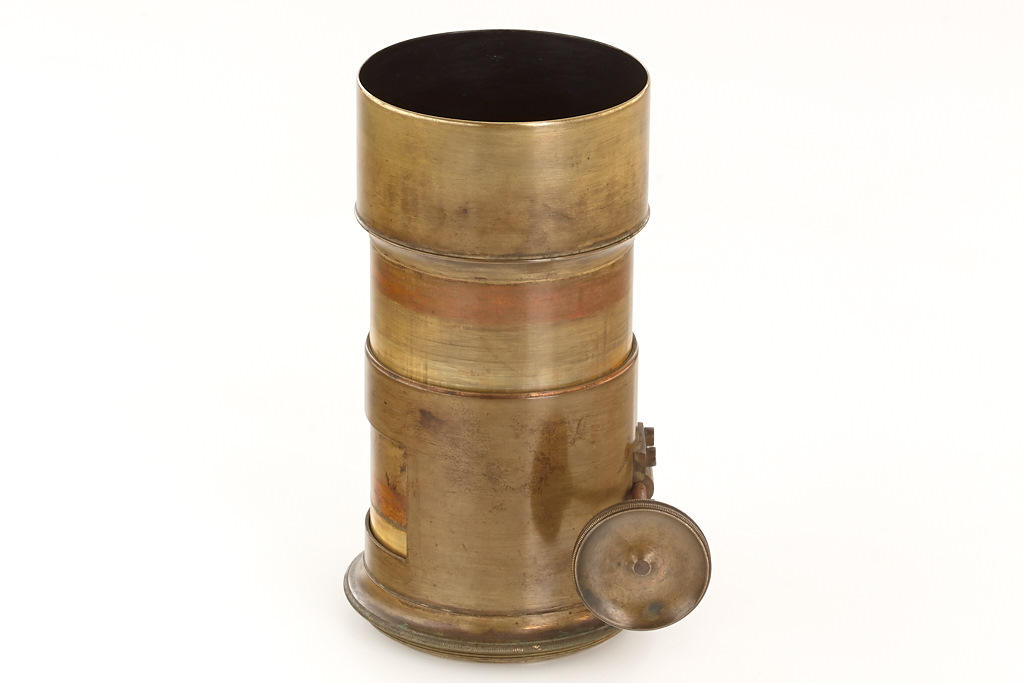 approx. 25cm focal length, very good optics, rack and pinion focusing, barrel engraved 'Voigtländer & Sohn in Wien und Braunschweig', lens diameter c.7cm, total height incl. hood 17.5cm, for waterhouse stops