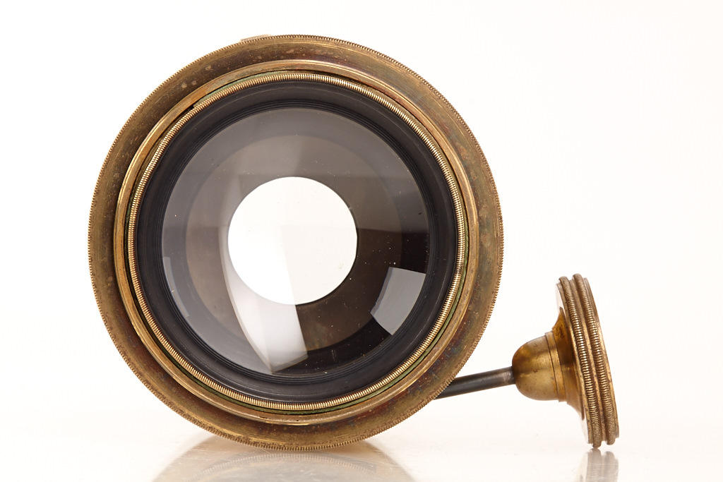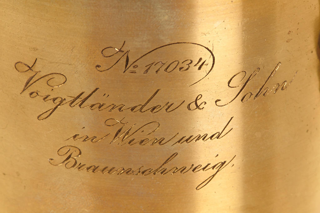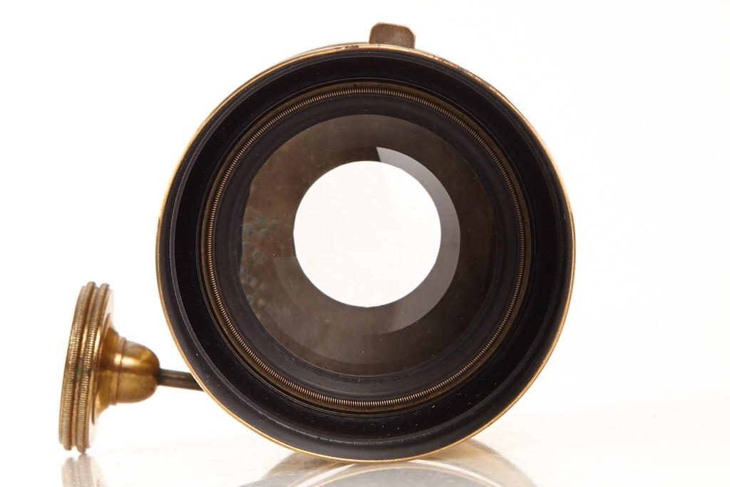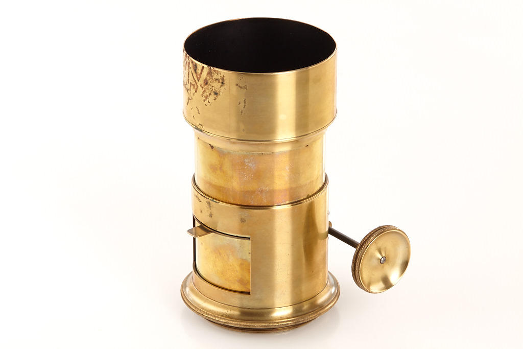 approx. 20cm focal length, very good optics, rack and pinion focusing, barrel engraved 'Voigtländer & Sohn in Wien und Braunschweig', lens diameter c.5.5cm, total height incl. hood 15cm, including one waterhouse stop