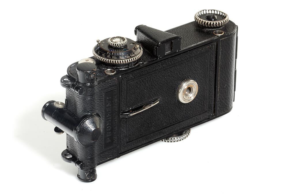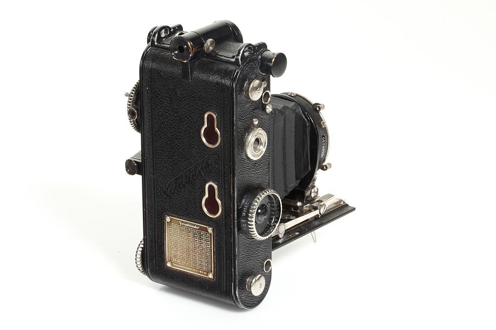 for 6x9cm exposures on rollfilm, in fine condition with Heliar 4.5/10.5cm no.787015, original case, the Prominent was the first camera with a built-in light meter