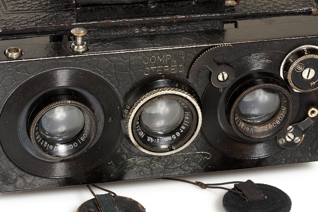 4.5x10.7cm, second type, with a pair of Heliar 4.5/65mm lenses nos.208099/100 and Heliar 4.5/65mm finder lens no.219848 caps, magazine back