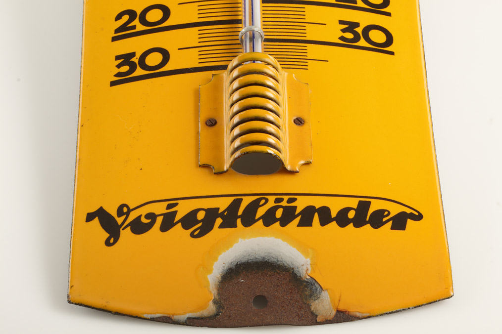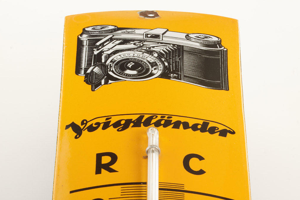 scarce Voigtländer advertising sign showing a Vito, height: 65cm, width: 15cm