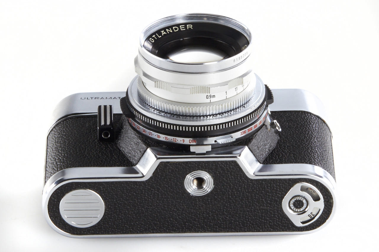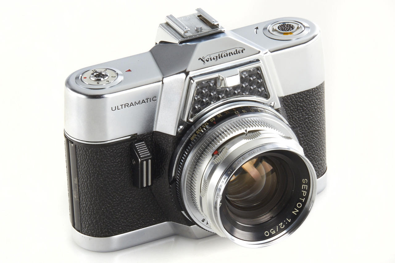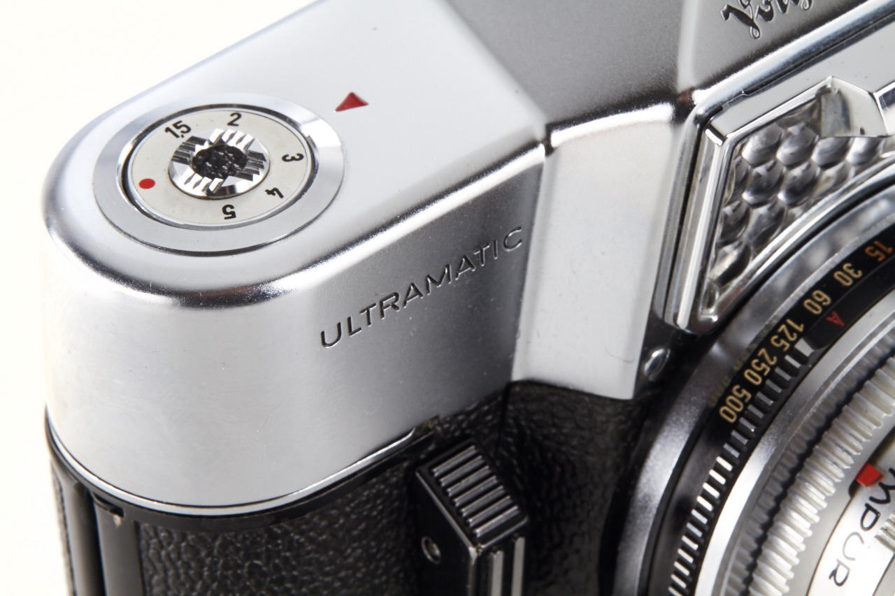 mint Ultamatic camera with everready case and set of three clean lenses: mint Septon 2/50mm no.6195208, mint Skoparex 3.4/35mm no.6457898 and boxed mint Zoomar 2.8/38-82mm no.4870936 inclusive filter adapter, yellow filter and rubber hood