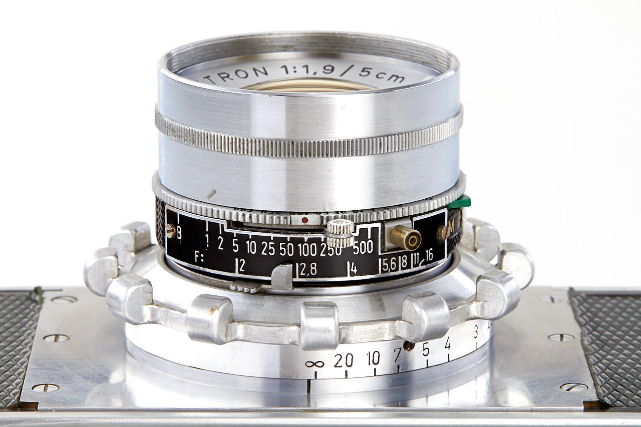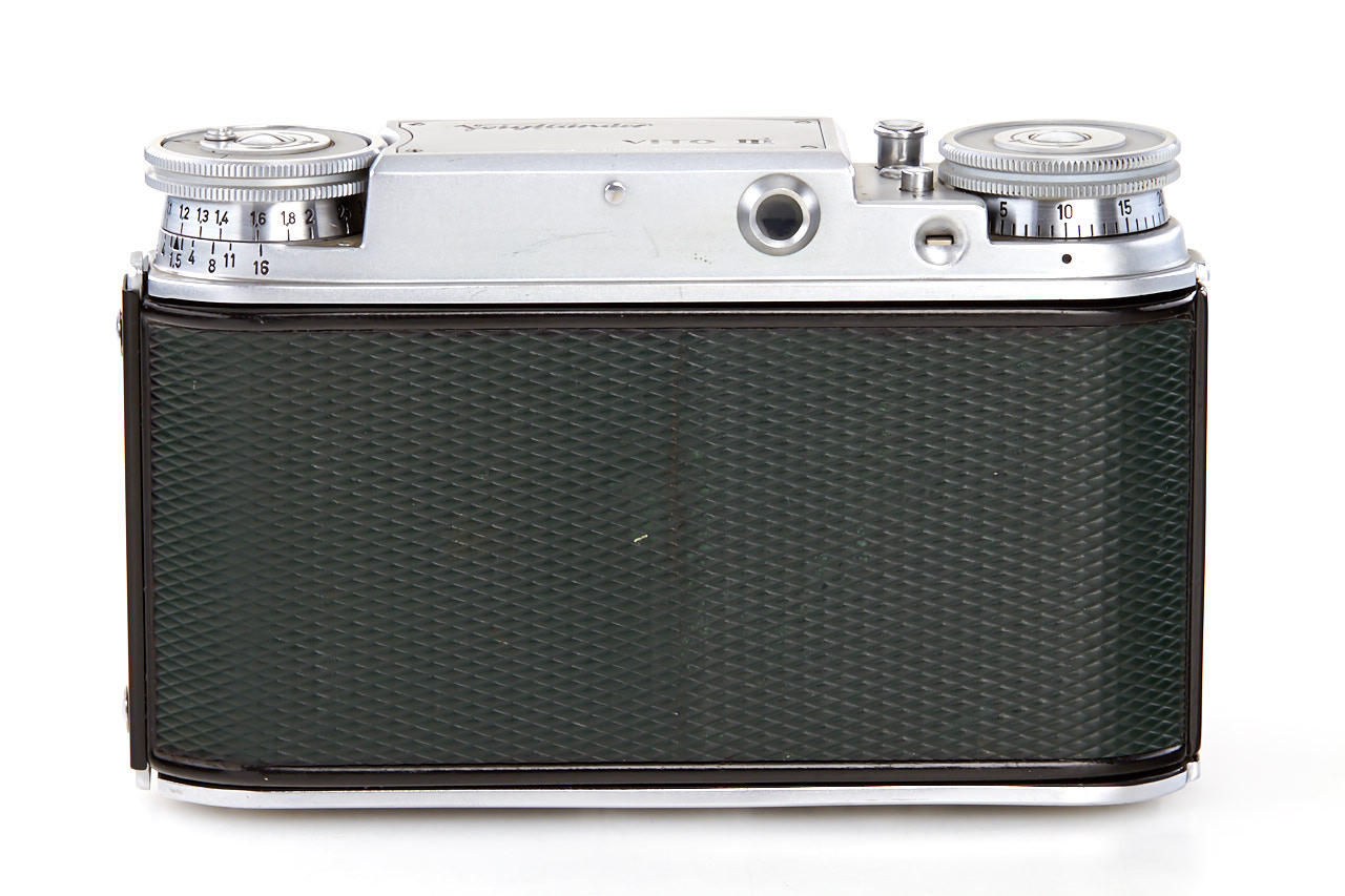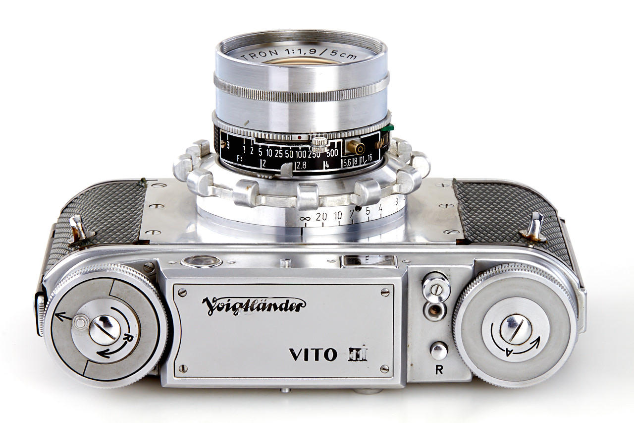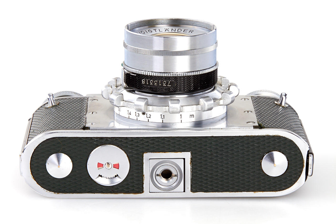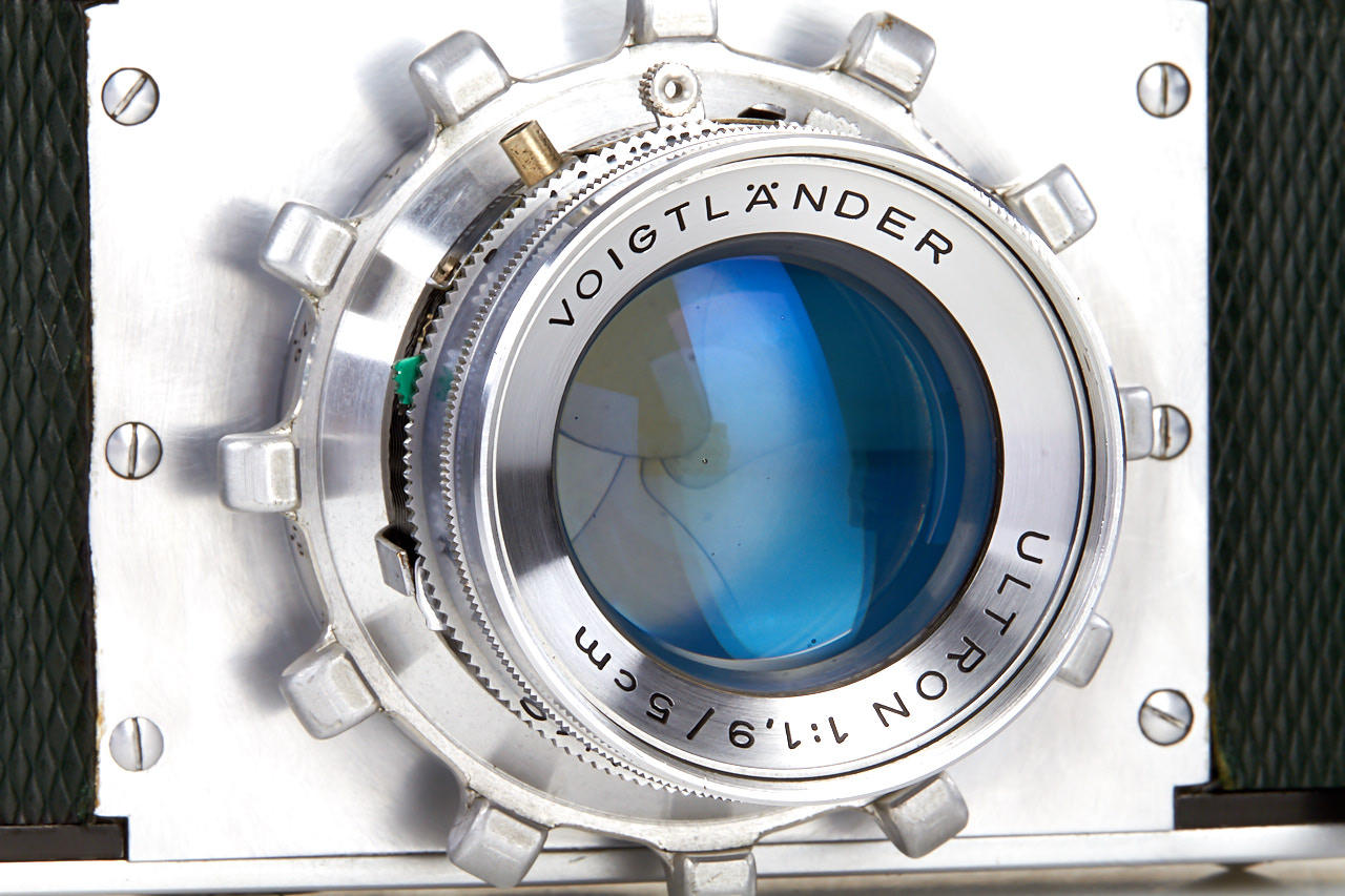 Unique prototype with coupled rangefinder, fixed Ultron 1.9/5cm in Compur shutter to 1/500 sec., very similar to the prototype PR2058 illustrated in Prochnow 'Voigtländer Report 1' page 43, but with several notable differences like the large mounting plate for the lens (mounted instead the standard Vito III folding bed), green leather covering with vertical diamond pattern, different strap lugs etc., camera in excellent and fully working condition – the camera is illustrated in McKeowns Price Guide 12th Edition page 969