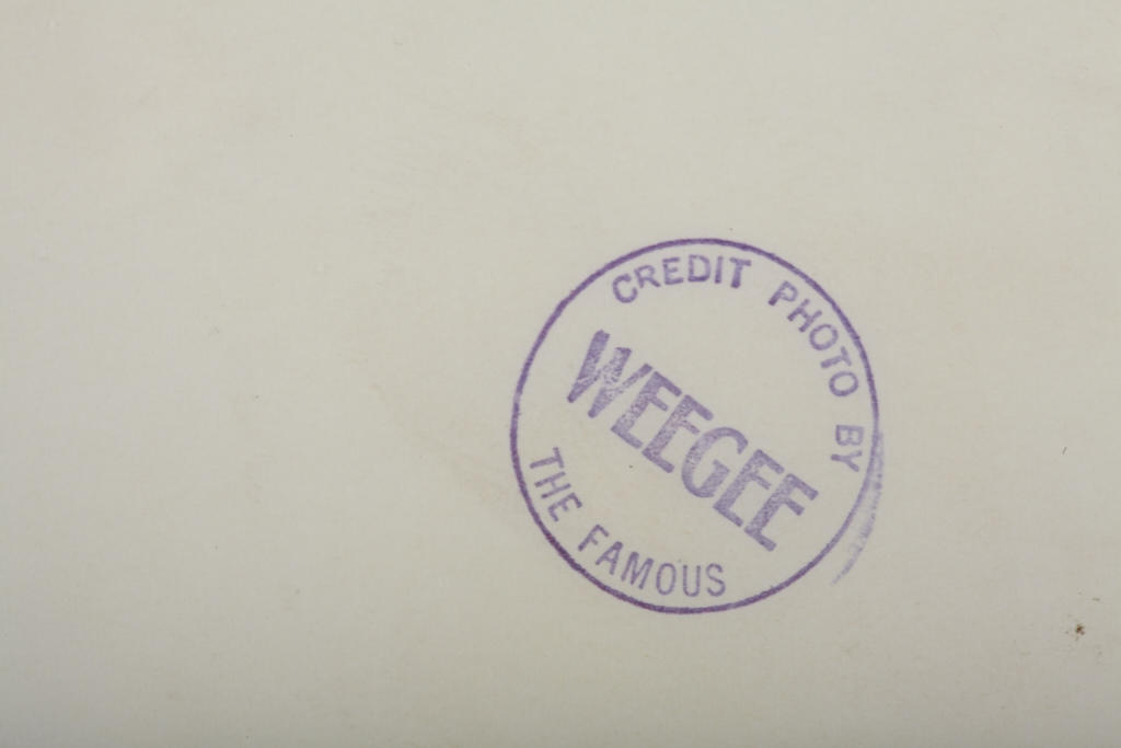 Vintage silver print 25,7 x 30,5 cm (10.1 x 12 in) Photographer's circular “CREDIT PHOTO BY WEEGEE THE FAMOUS” stamp on the reverse