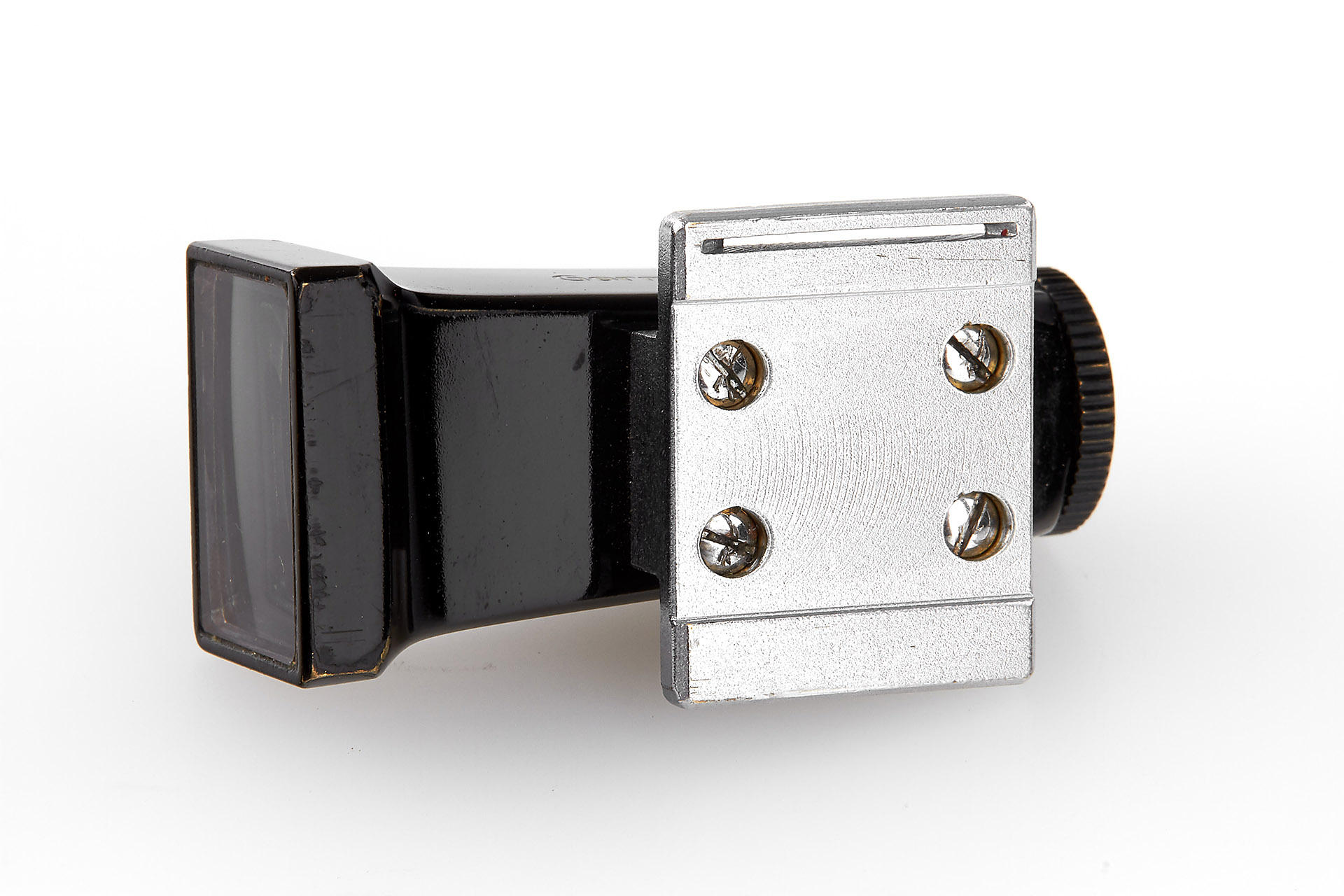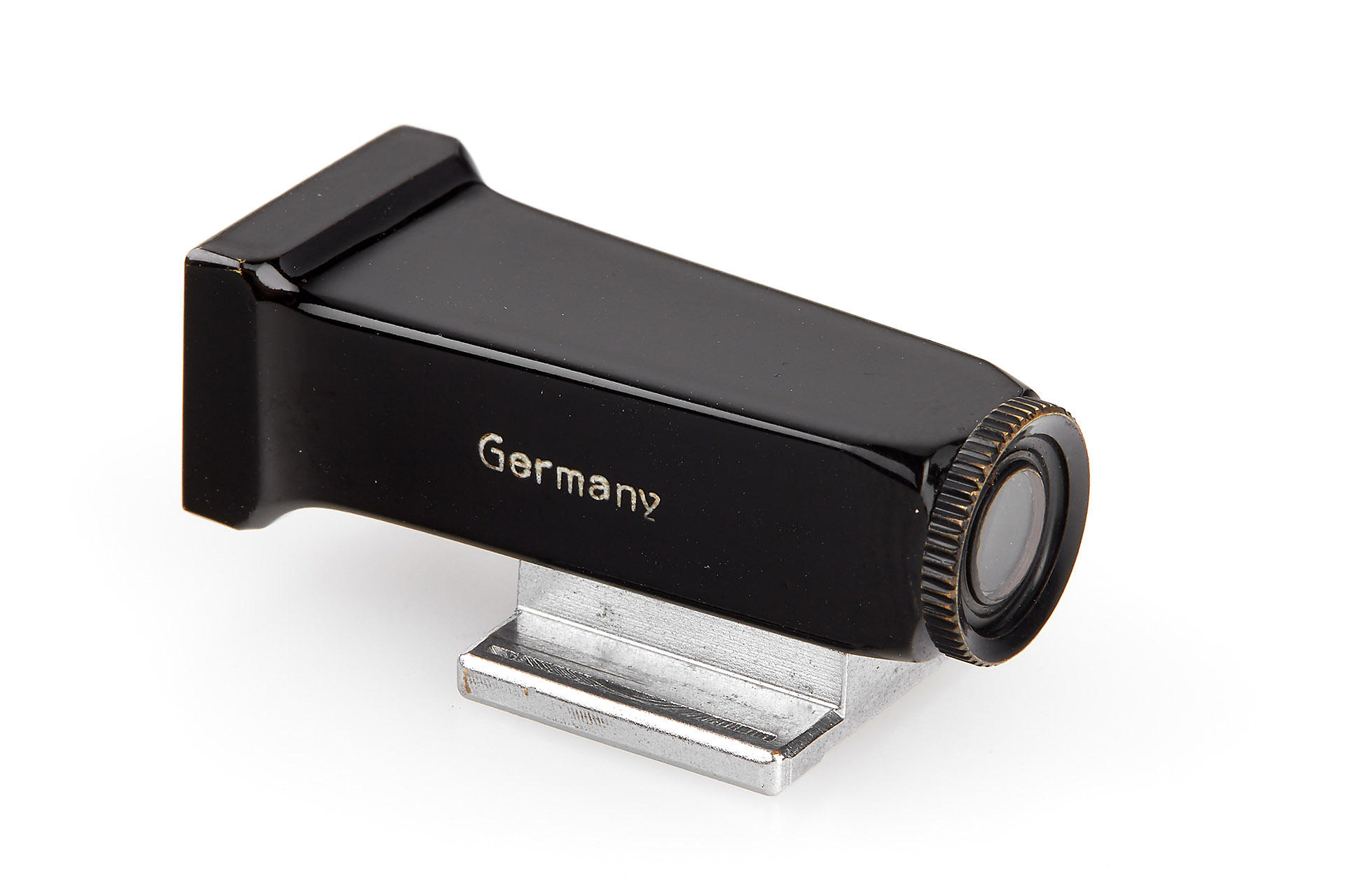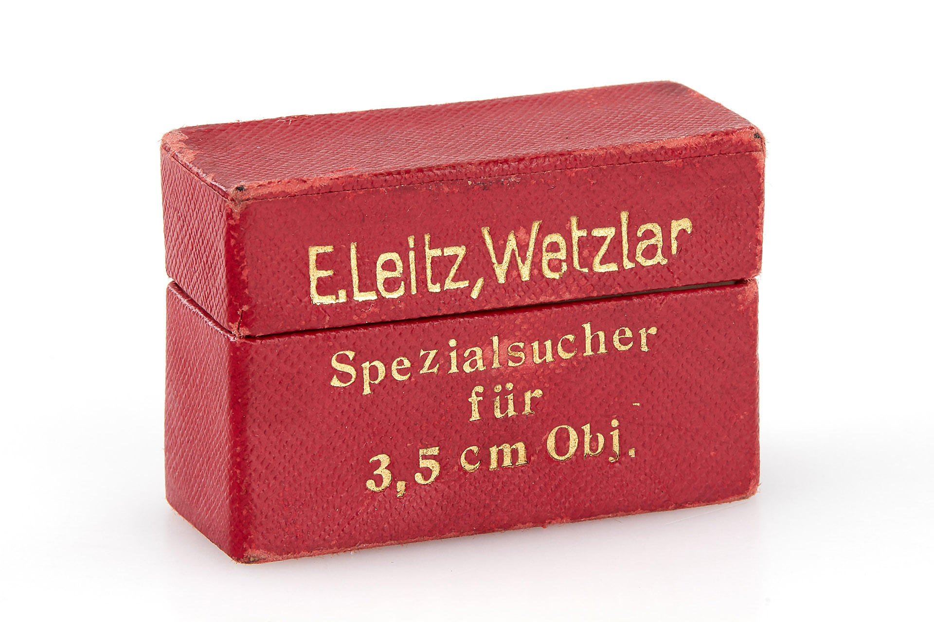 3.5cm finder, early black type with flared end, chrome foot, engraved with 'Germany', with maker's box, in beautiful condition