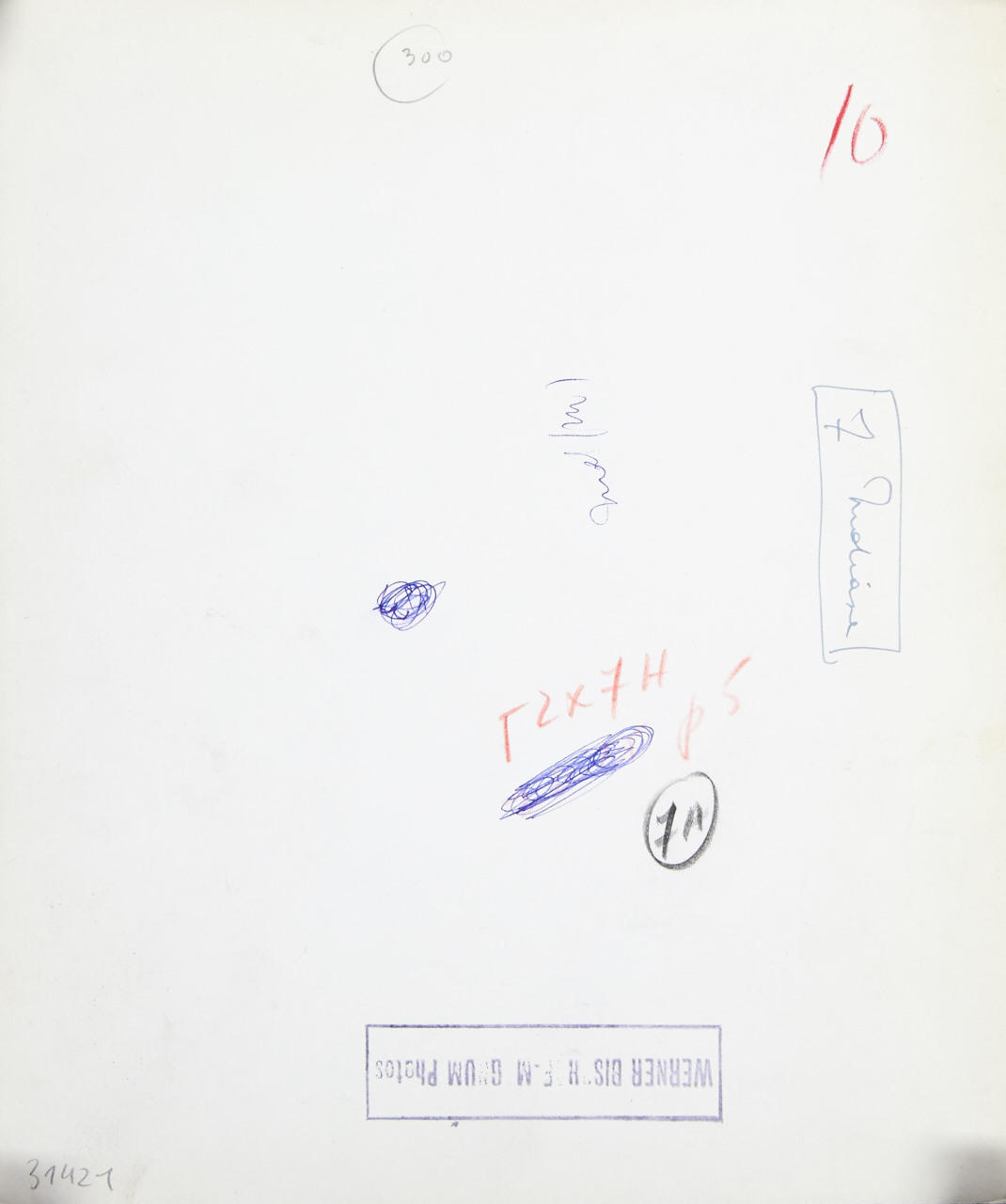 Gelatin silver print, printed in the 1970s 24,7 x 20,6 cm Photographer's agency stamp and several handwritten notations in ink and pencil on the reverse