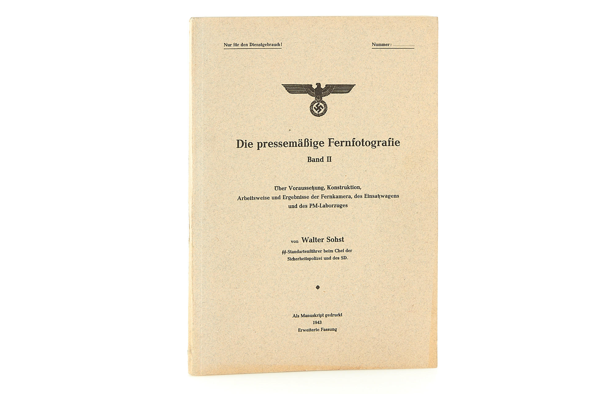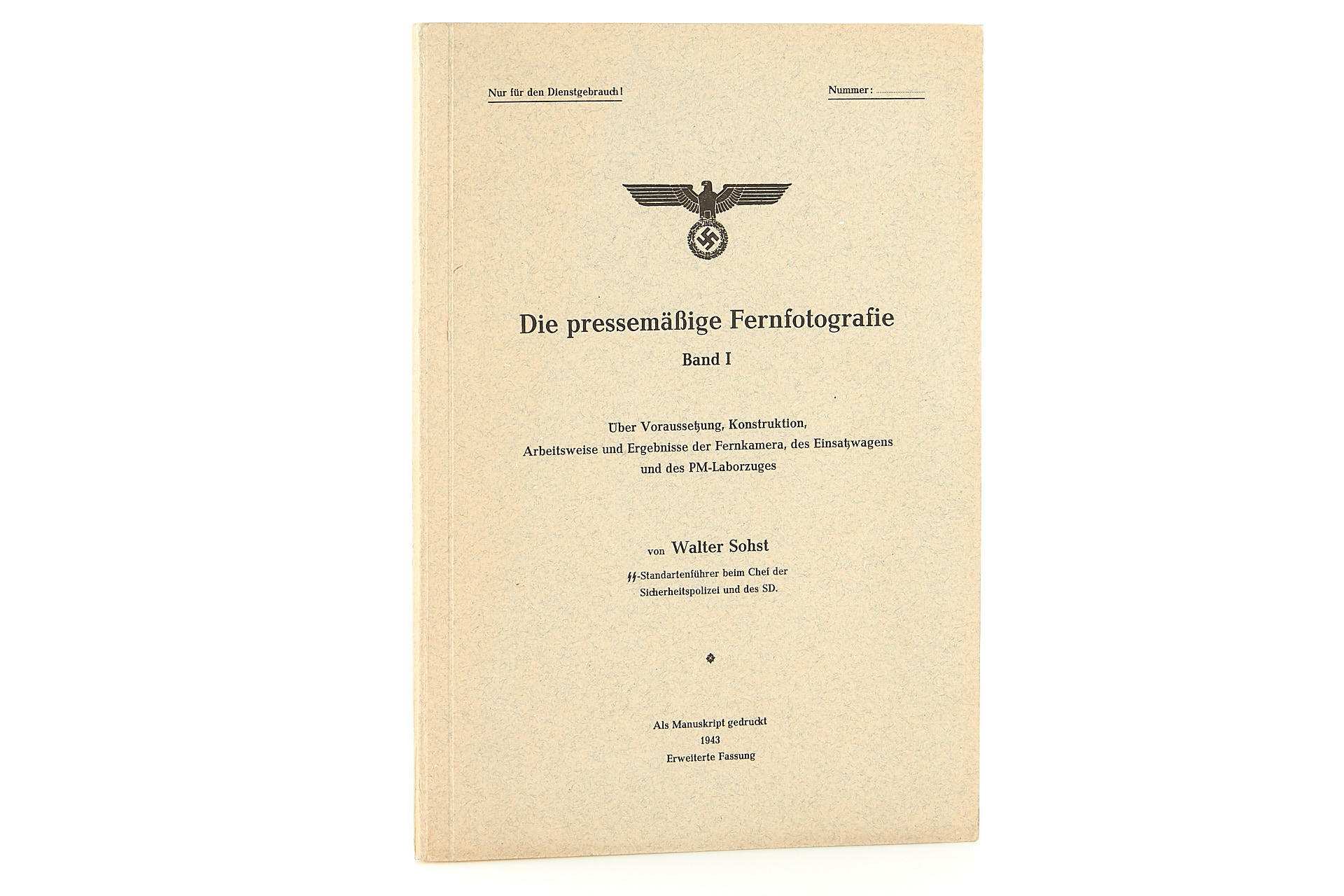 an interesting, original WWII document, describing in details the technology of Tele-Photography of German Military during the WWII, two volumes, the second one extensively illustrated, showing equipment from companies like Leitz, Astro-Berlin, Siemens etc., an important find from the history of Photography in WWII