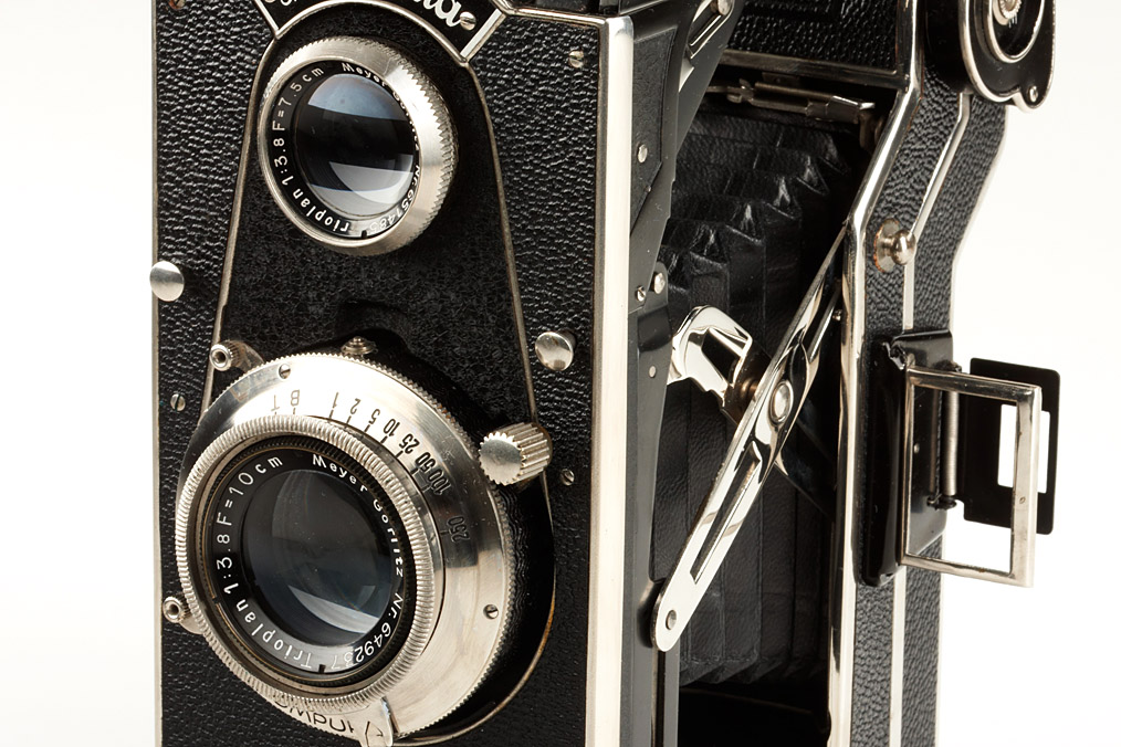 close to mint 6x9cm folding TLR in unusual design, Trioplan 3.8/10cm no.649237, in perfect working order with everready case - for sure one of the most beautiful Superfekta