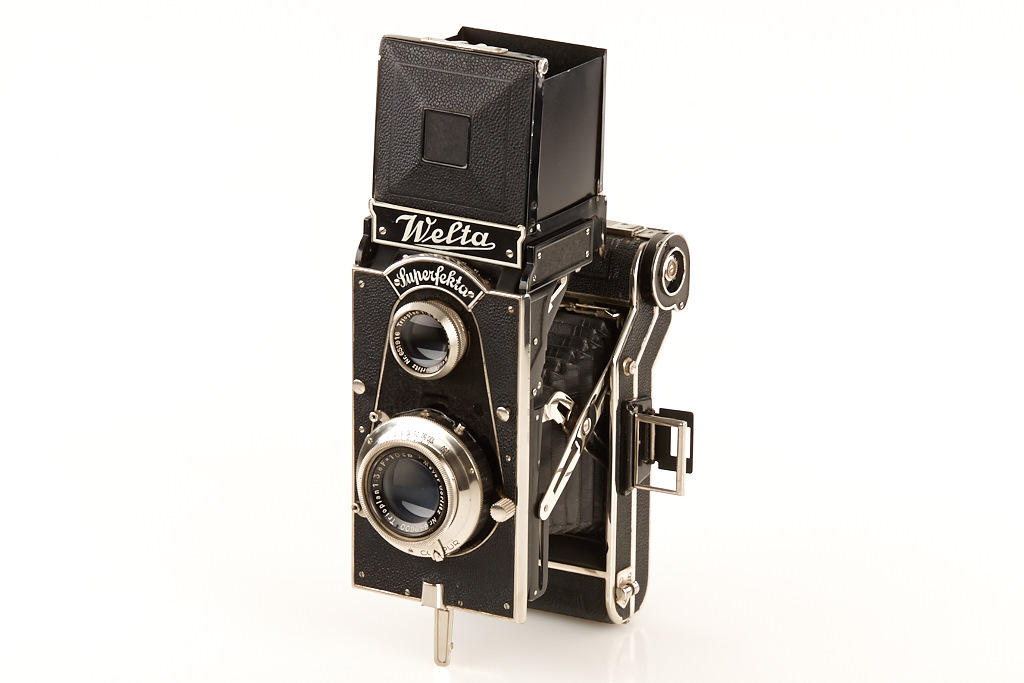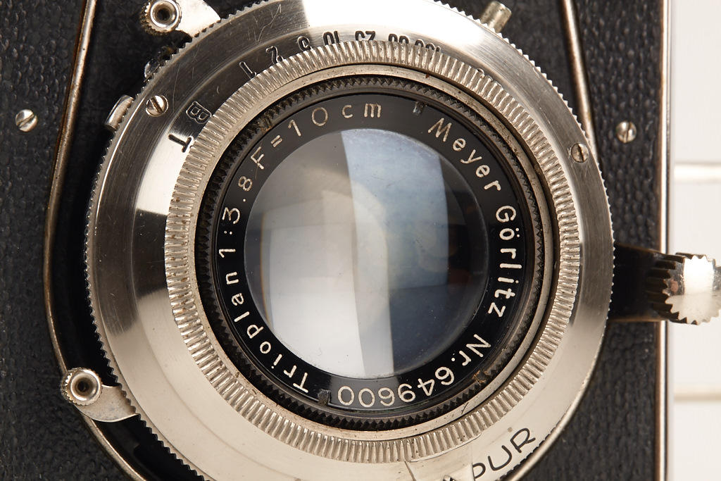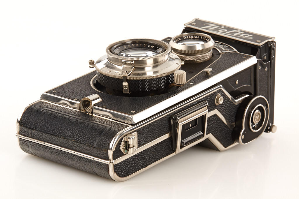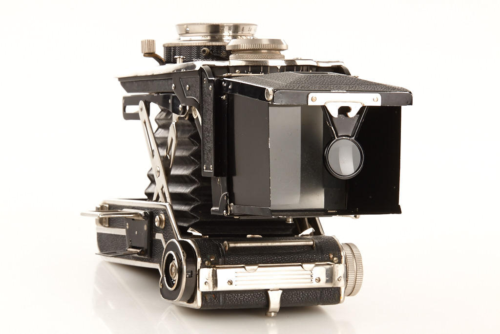 near mint 6x9cm folding TLR in unusual design, Trioplan 3.8/10cm no.649600, in good working order