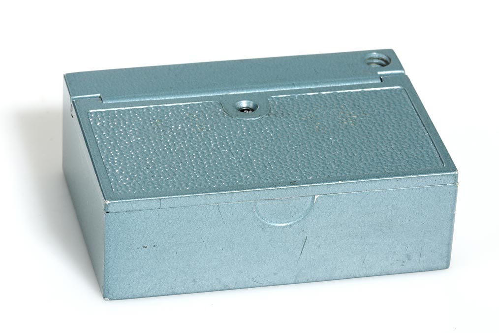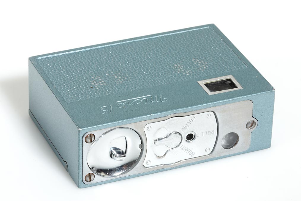 two early Micro 16 cameras, black no.63549, blue no.70692, both with one cassette, one everready case