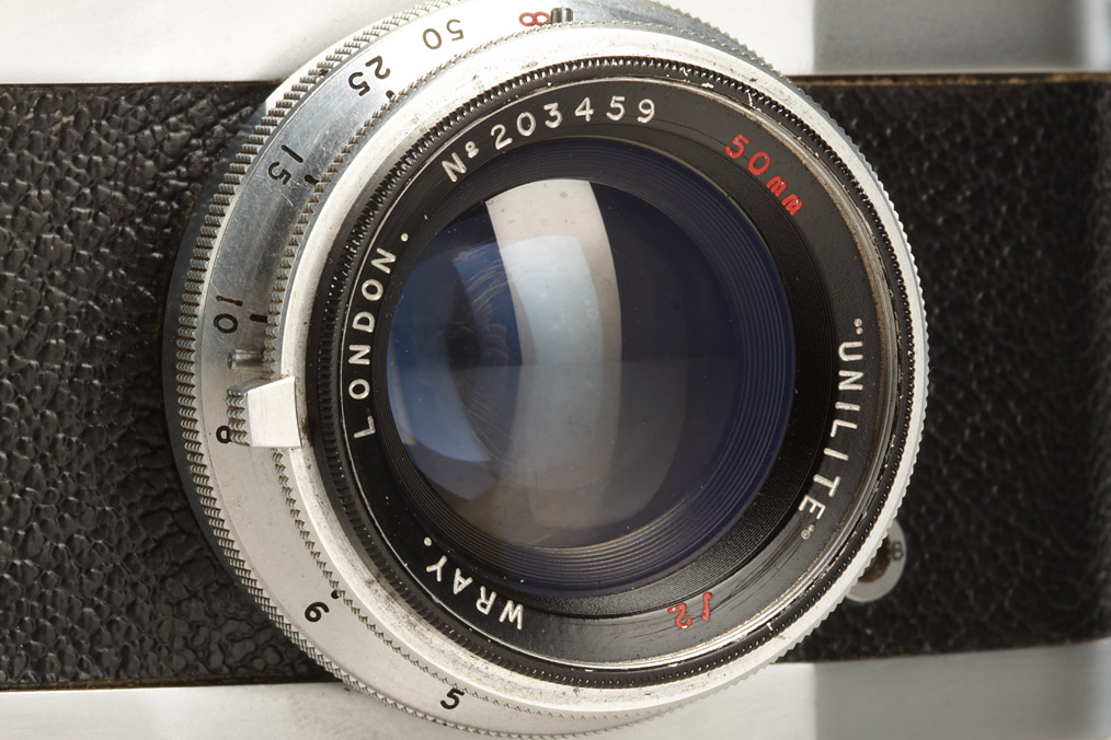 very rare last model (total production approx. 300 cameras) with penta prism, camera in very fine and good working condition with fast Unilite 2/50mm no.203459, everready case, Lustrar 3.5/35mm no.193367 (with keeper), Lustrar 4/13,5cm no.187583 with hood, yellow filter, instruction book